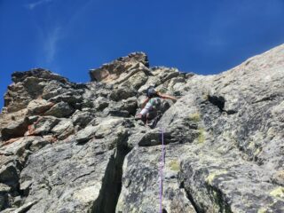 Avvicinamento al bivacco molto lungo, con zaini pesanti, un vero viaggio. Per salire alla Gran bella Tsa saliti da sx con brevi passi di arrampicata,…