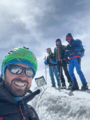 Giornata di sole pieno, il vallone di salita era completamente protetto dal vento, che si é presentato abbastanza forte 150 metri sotto la vetta. Abbiamo…