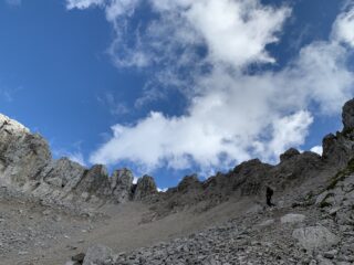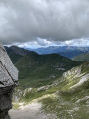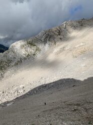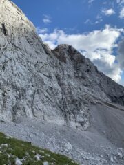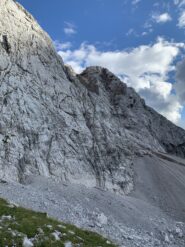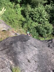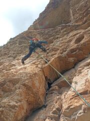 Dal parcheggio un’ora e mezza circa all’attacco della via. Scritta rossa evidente dalla base. L2 passaggio delicato su placca. Allungare perché il tiro gira e…