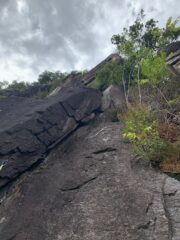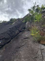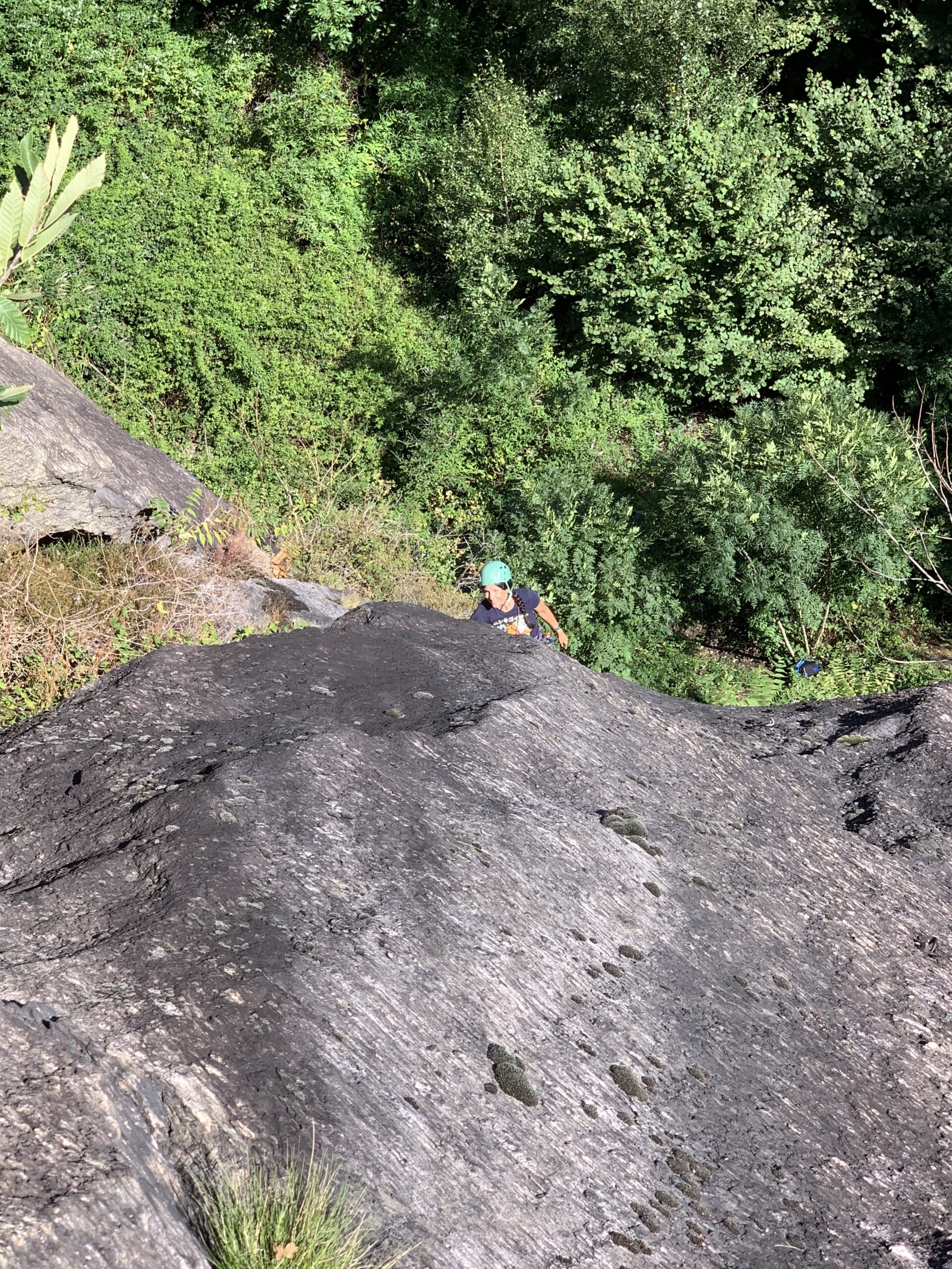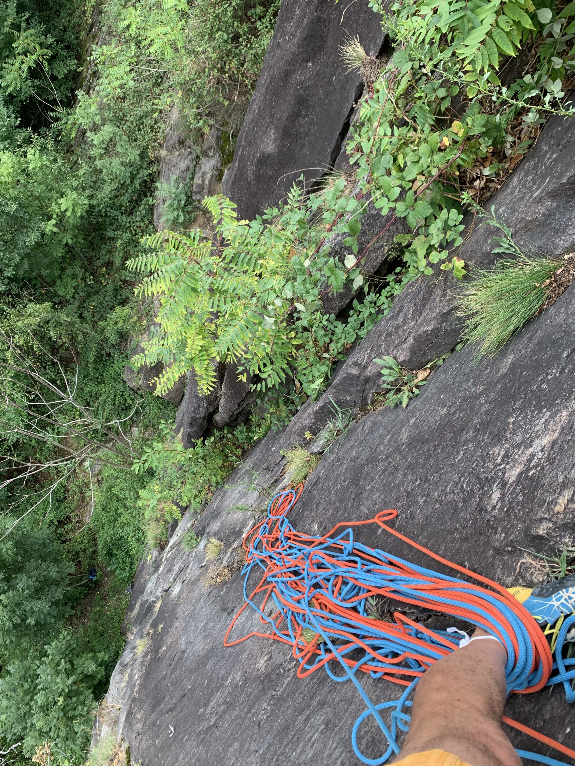 Via muschiata in partenza L1, poi molto vegetata L2. Fessura di soddisfazione L3, tiro chiave, si abbatte su L4. Roccia ottima. Possibile integrare ma chiodatura…