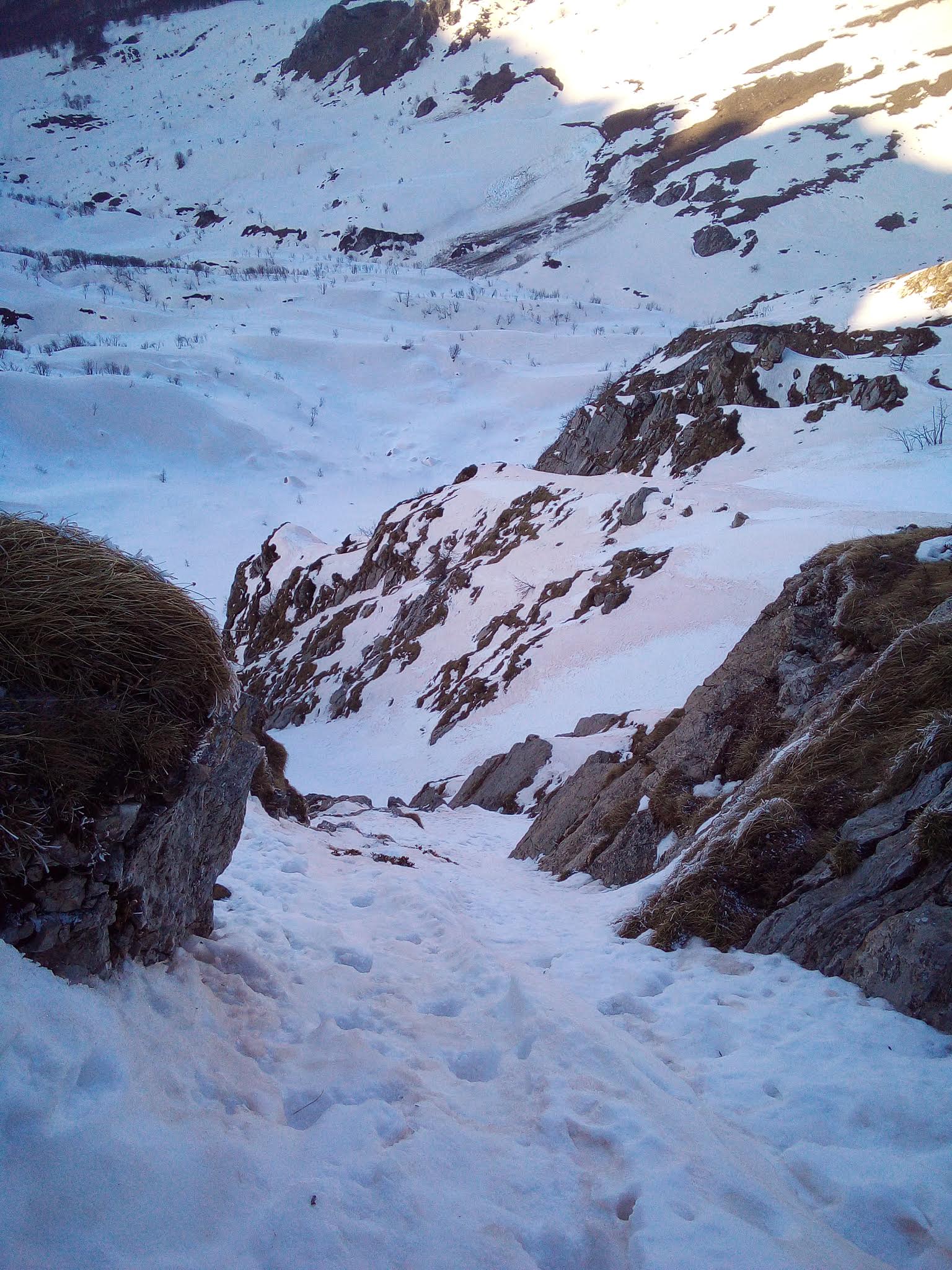 | fabrizioro | Il dedalo di crepacci | fabrizioro | La situazione di quest'anno | fabrizioro | Il tratto finale che arriva in cresta | fabrizioro | Lungo L3 | fabrizioro | In avvicinamento | fabrizioro | In uscita dal primo tiro | fabrizioro | Il secondo tiro | fabrizioro | Il canale dall'alto, nei pressi dell'uscita | fabrizioro | Lungo la via | fabrizioro | L'attacco | fabrizioro | Il tracciato della via | fabrizioro | Il primo camino | fabrizioro | Il traverso sulla cengia