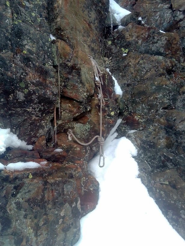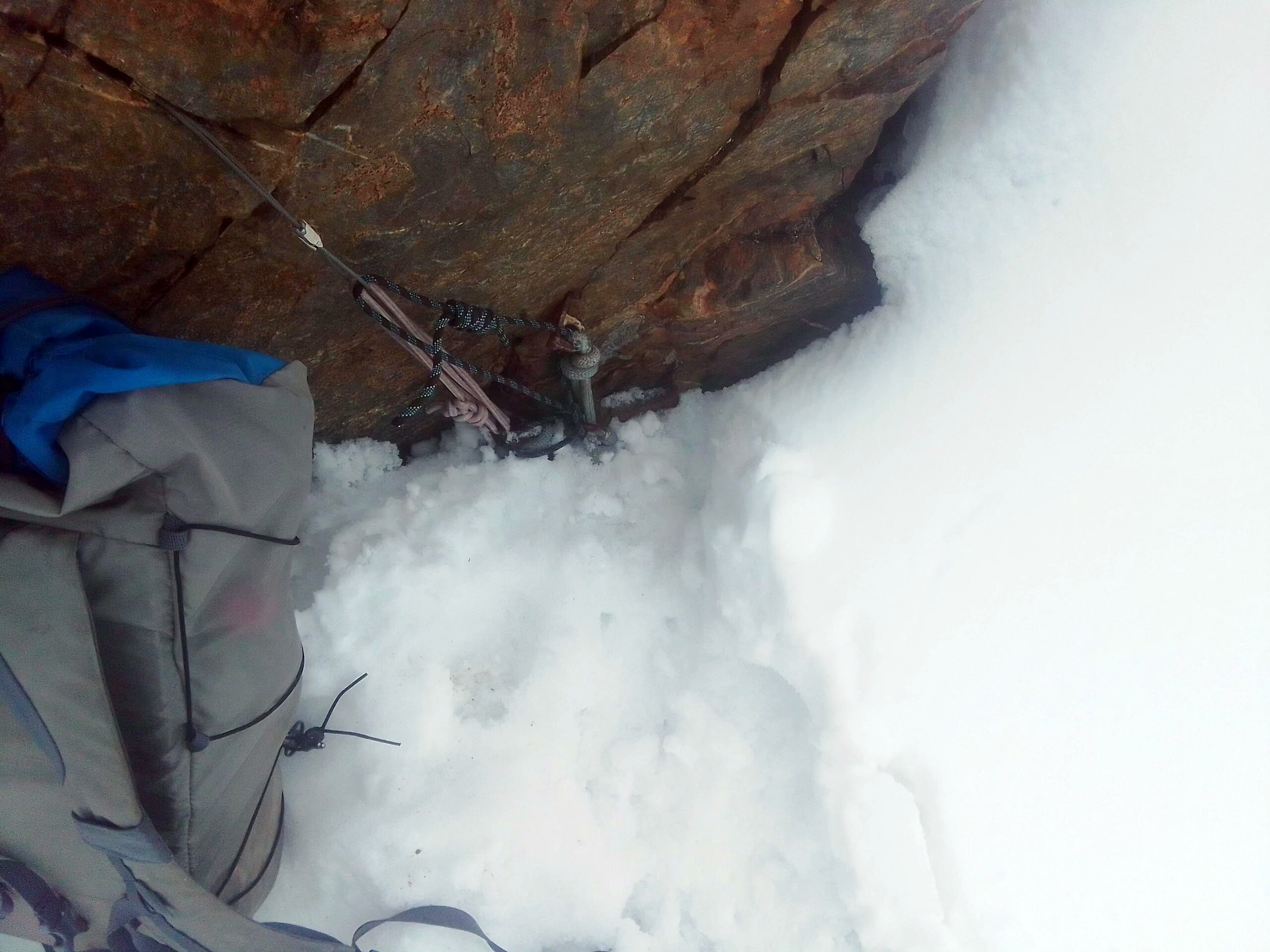 | fabrizioro | La linea seguita (l'originale passava più a dx, sotto la verticale del Triangolo) | fabrizioro | Verso l'attacco | fabrizioro | Collegamenti un po' alla frutta | fabrizioro | | fabrizioro | La sosta al Colletto Pensa | fabrizioro | Una seconda sosta di calata, per ora non necessaria