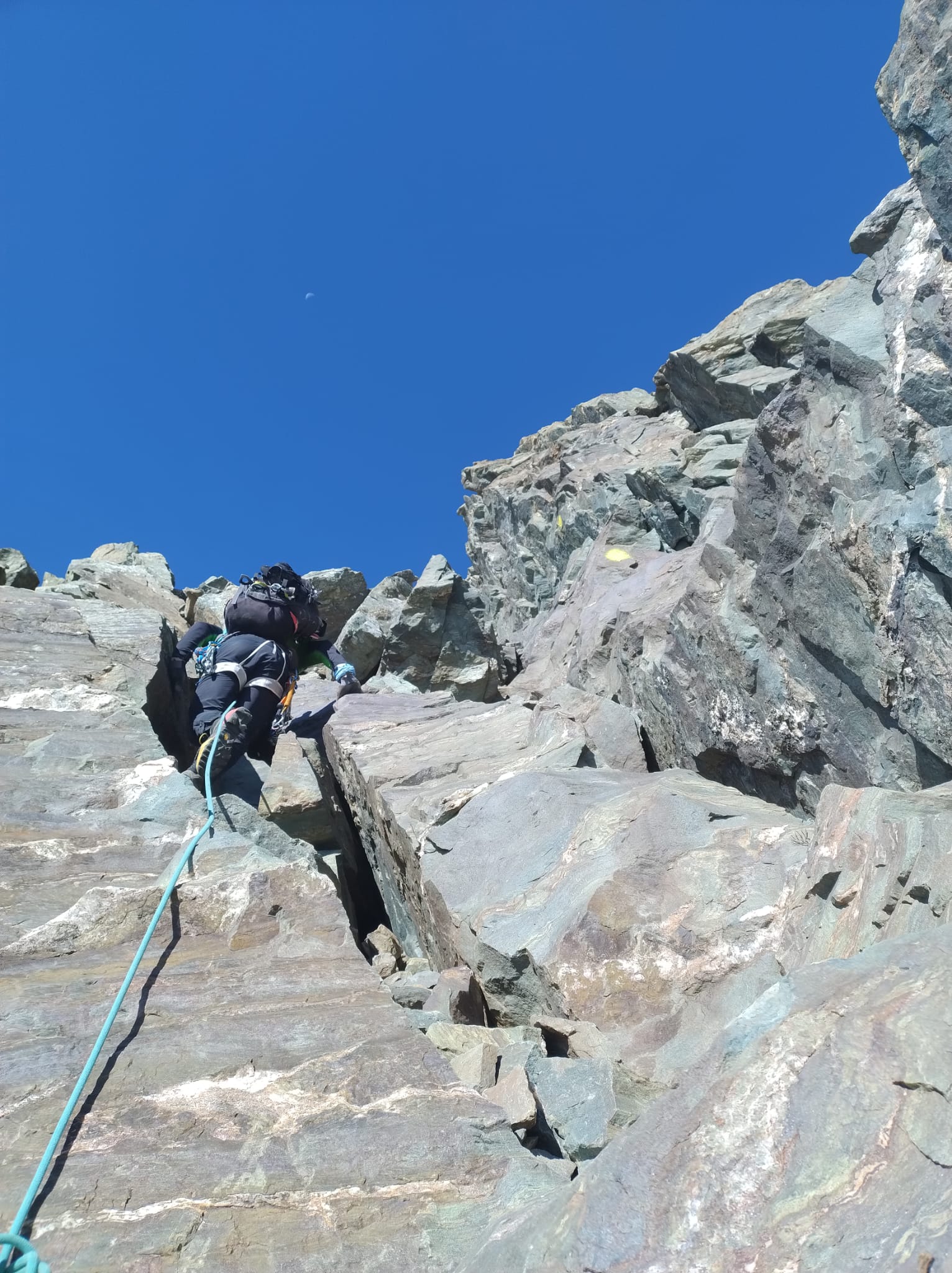 Gita lunga e assolutamente non banale per un paio di passaggi e per l'orientamento. Dopo il bivacco siamo saliti a sinistra a naso in quanto…