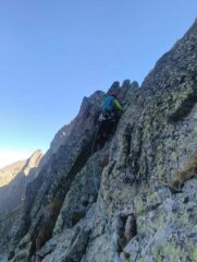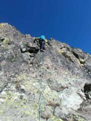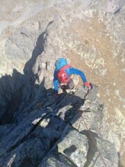 Abbiamo cercato di seguire pedestreamente il filo della cresta senza girare le difficoltà e si riesce a fare tutto senza alcuna calata con un po'…