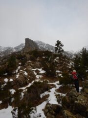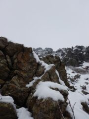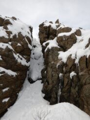 Fin dopo il Corno Stella si scala senza neve dopo inizia il divertimento.Purtroppo neve non trasformata quindi dry e pulizia della roccia
