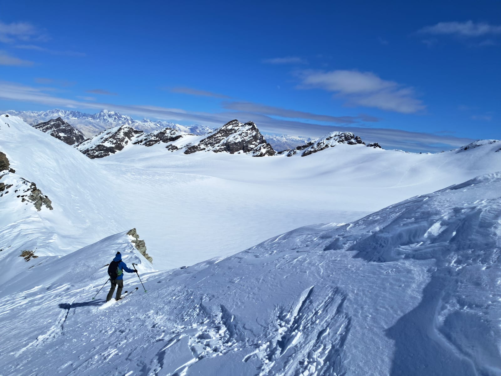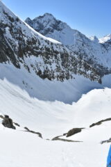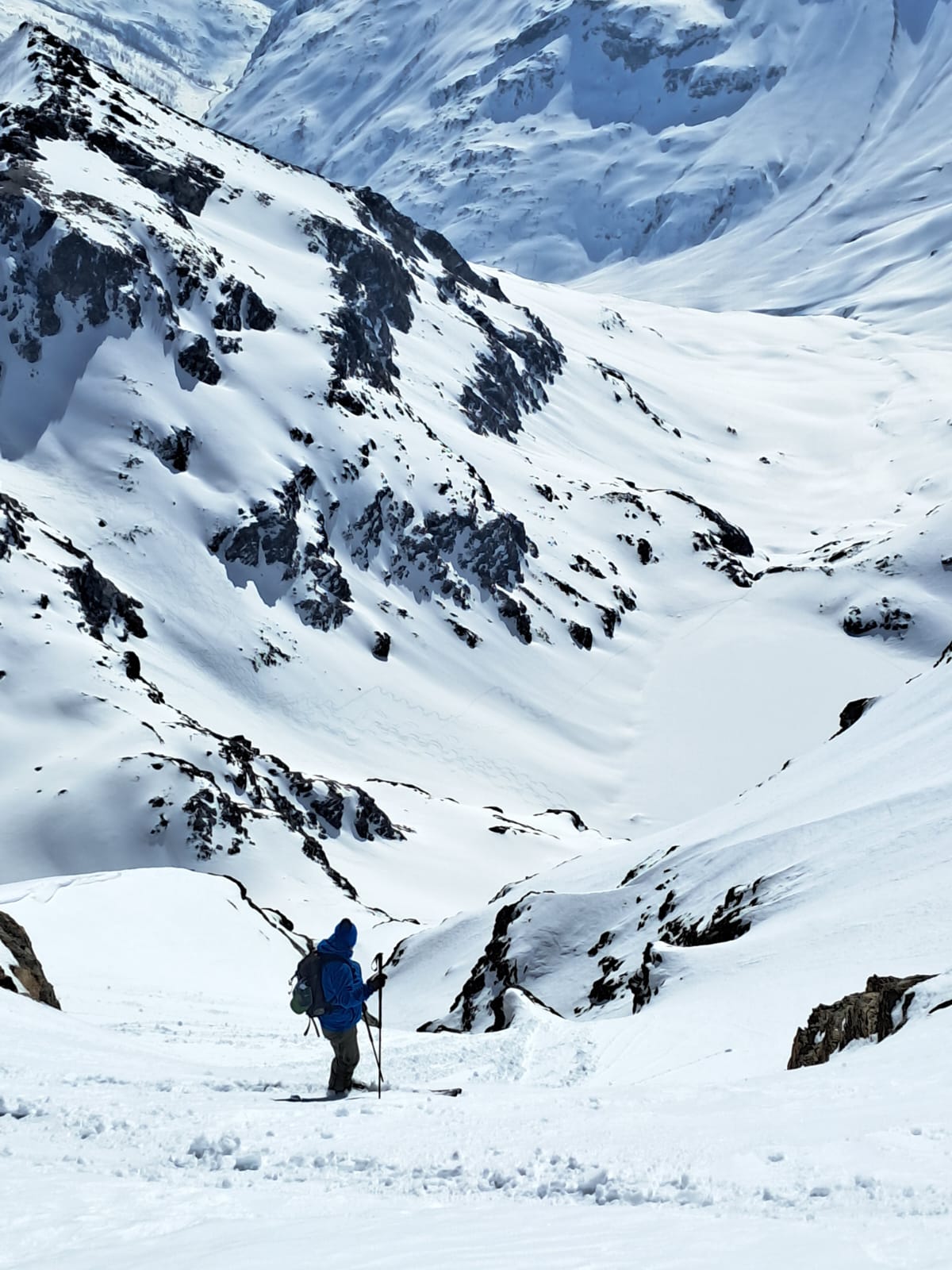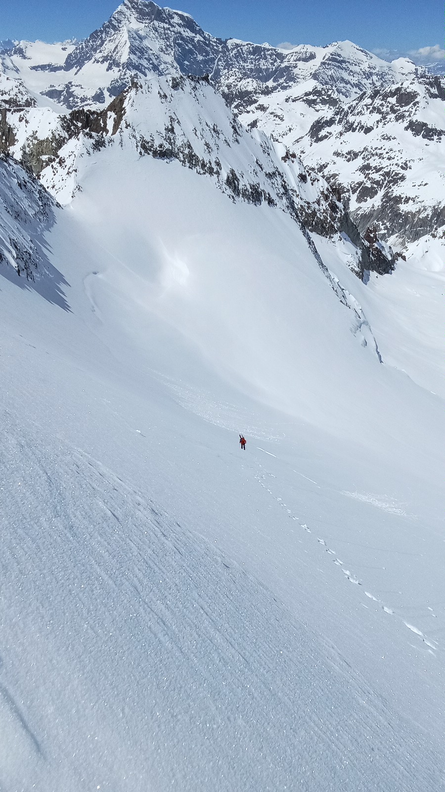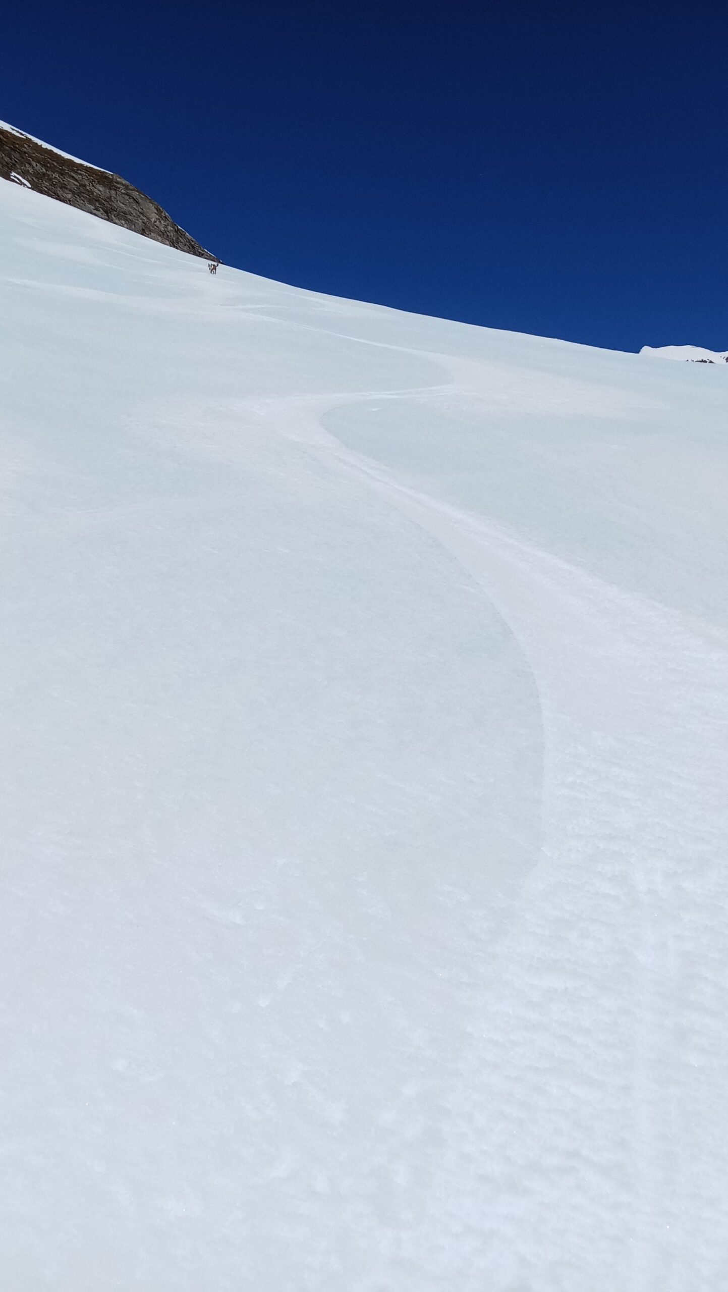 Partenza all alba con ottimo rigelo, ancora un discreto quantitativo di neve nella "comba" di planaval. In fondo al vallone preso pendio, canale a sx che…