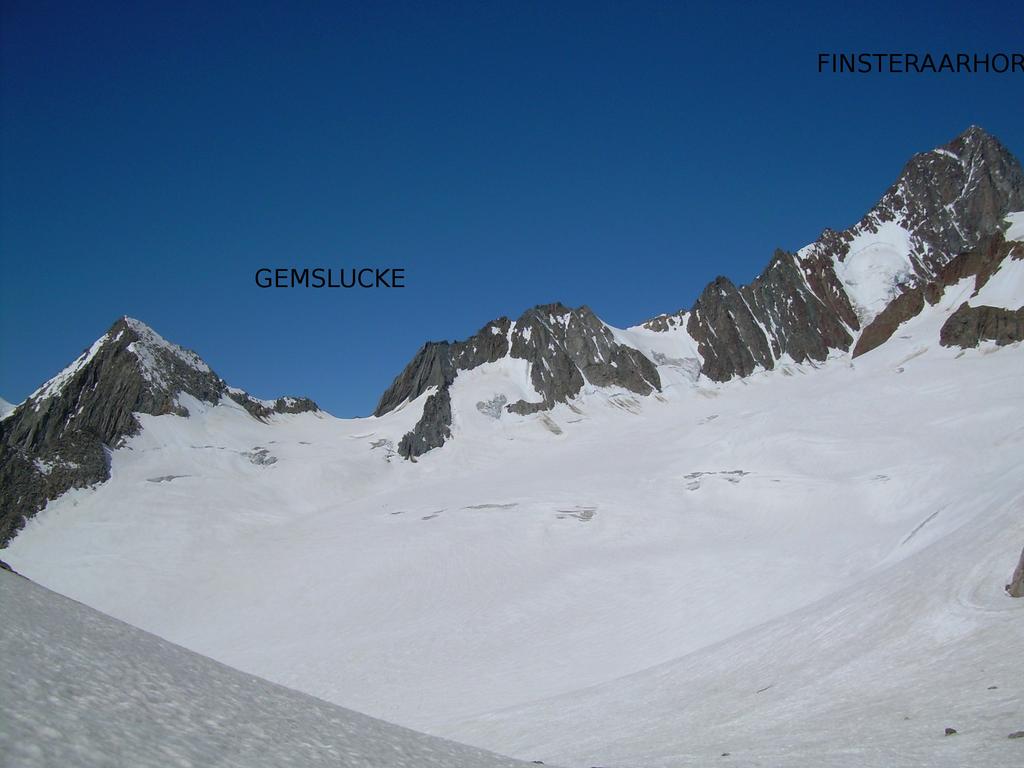 Gross e Hinter Fiescherhorn dal versante ovest della Fieschersattel, per le creste SE e NO (vie normali)