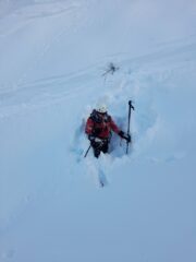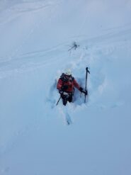 partiti con gli sci sulla schiena e calzati sui pendii superiori. Il cielo coperto non ha permesso un buon rigelo. La parete presentava tratti di…