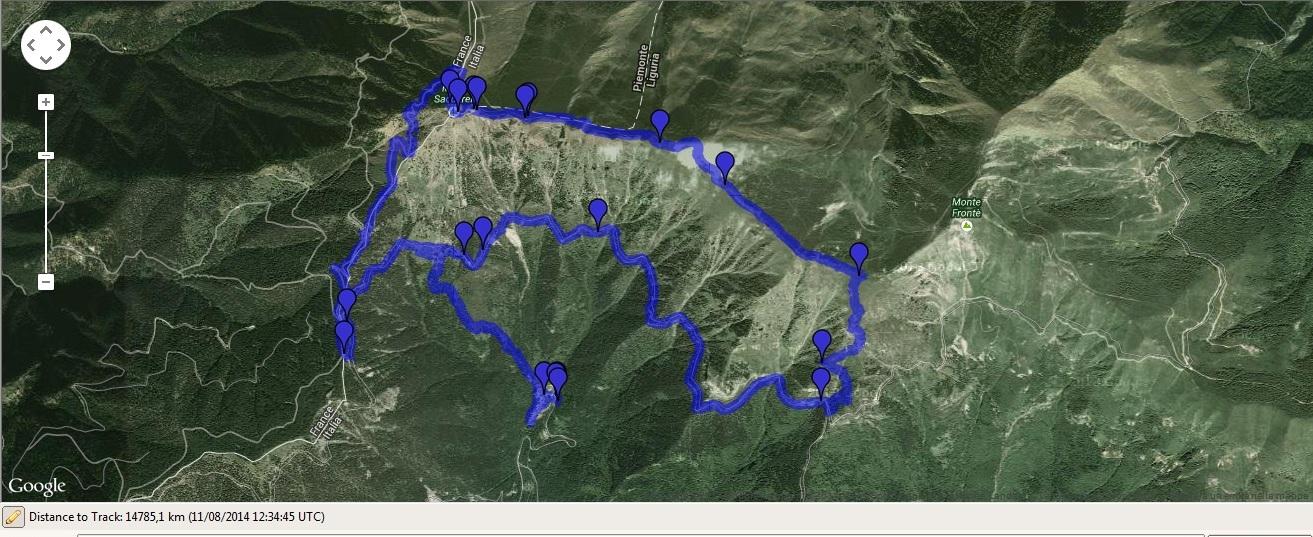 | fdf62 | Il redentore sull'anticima del Saccarello | fdf62 | Percorso dal satellite | fdf62 | Passo Garlenda | fdf62 | Stele di confine tra Piemonte, Liguria e Francia