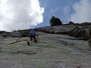 Falesia ben chiodata. Tiri prevalentemente in placca con qualche tettino da scavalcare e qualche bella fessura.
