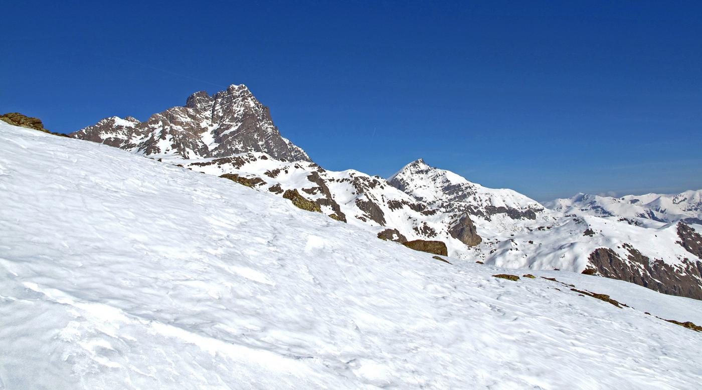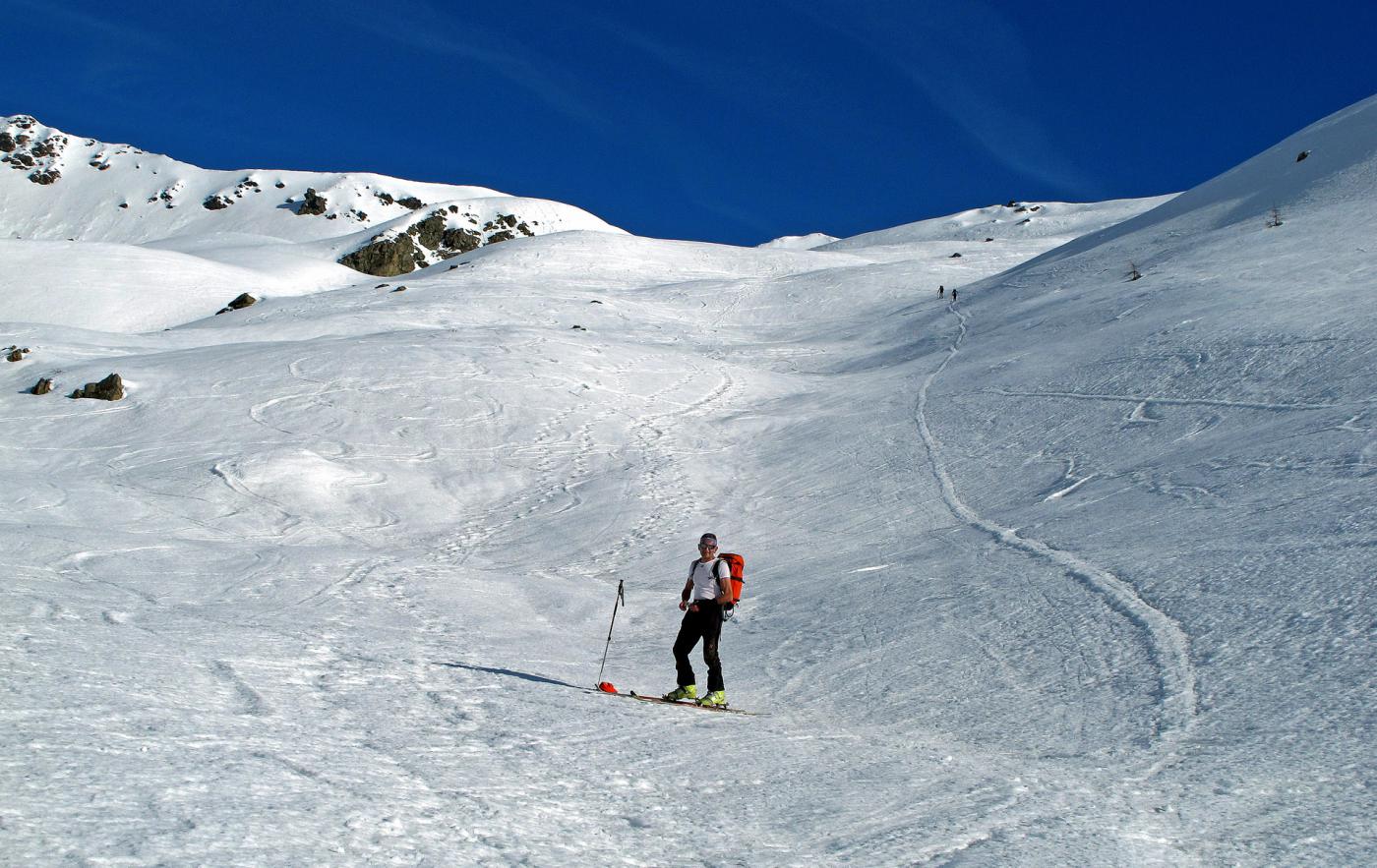 | fervado | Monviso dalla strada di Pian del Re | fervado | Superato il canale | fervado | Giovanni alla targa di Franco | fervado | Qui è tutto immacolato | fervado | Discesa sui pendii centrali | fervado | Qui si sciava sul velluto