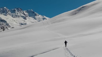 Parcheggio tutto libero alla partenza da Eaux Rousses, sotto l'Hostellerie du Paradis. Per la prima mezz'ora la neve è discontinua ed allora teniamo le racchette sullo…