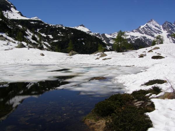 Prima del piano dell'Alpe Pian Pesse il sentiero "sparisce", inghiottito dai residui delle valanghe; bisogna inventarsi la salita, tra alberi divelti, passando dove si puo'.…