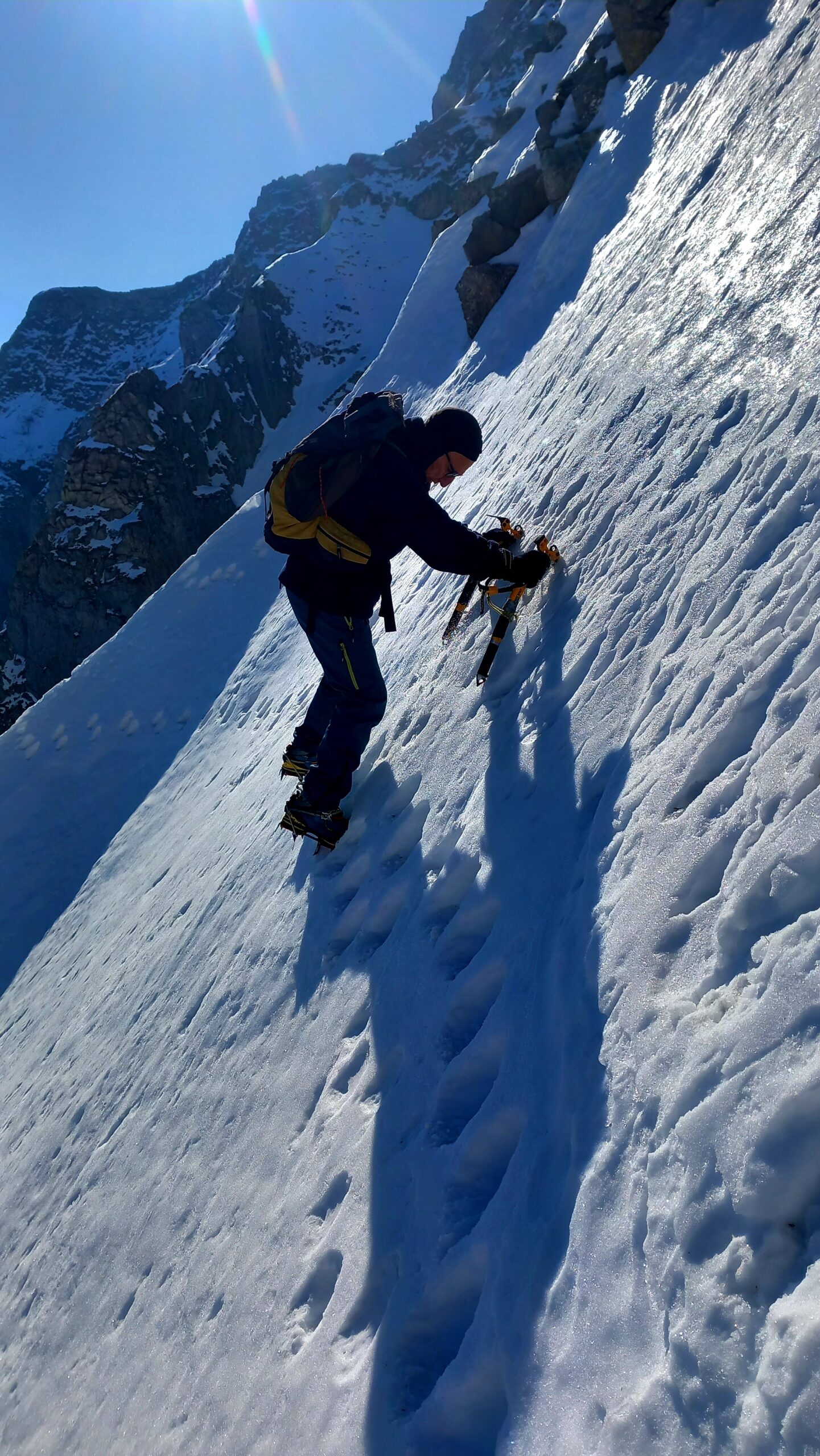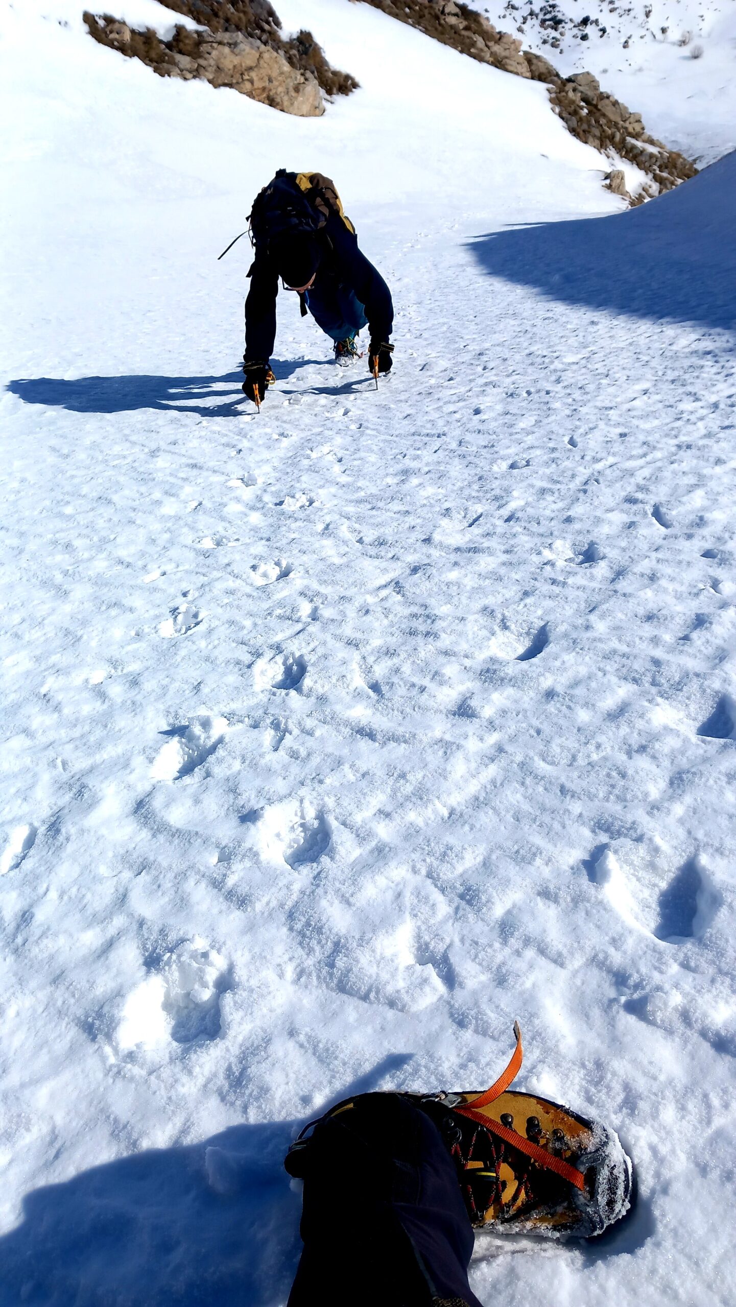 Portage di 30min, ma è destinato ad aumentare velocemente, molto caldo. Neve ancora bella, in salita utili i rampant fin da subito, sul pendio finale ho…