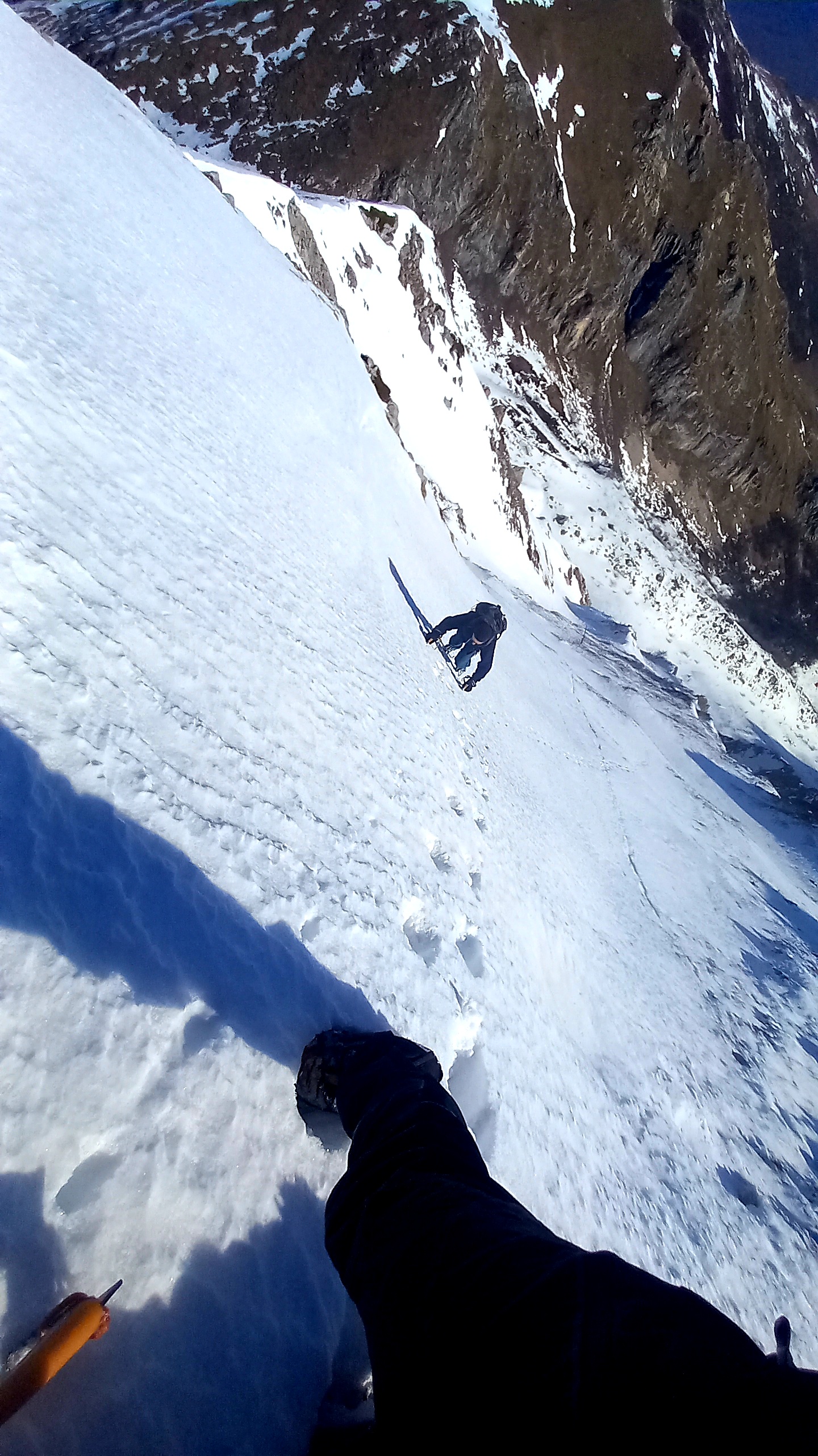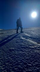 Bella salita ancora in buone condizioni, neve polistirolo che permette una progressione veloce anche fuori dalle profonde peste. Discesa altrettanto comoda e rapida, verso destra…