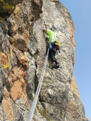Via bella e tutto sommato chiodata da non creare psicodrammi, la roccia non delle migliori sopratutto quando ci si porta verso lo spigolo, per il…