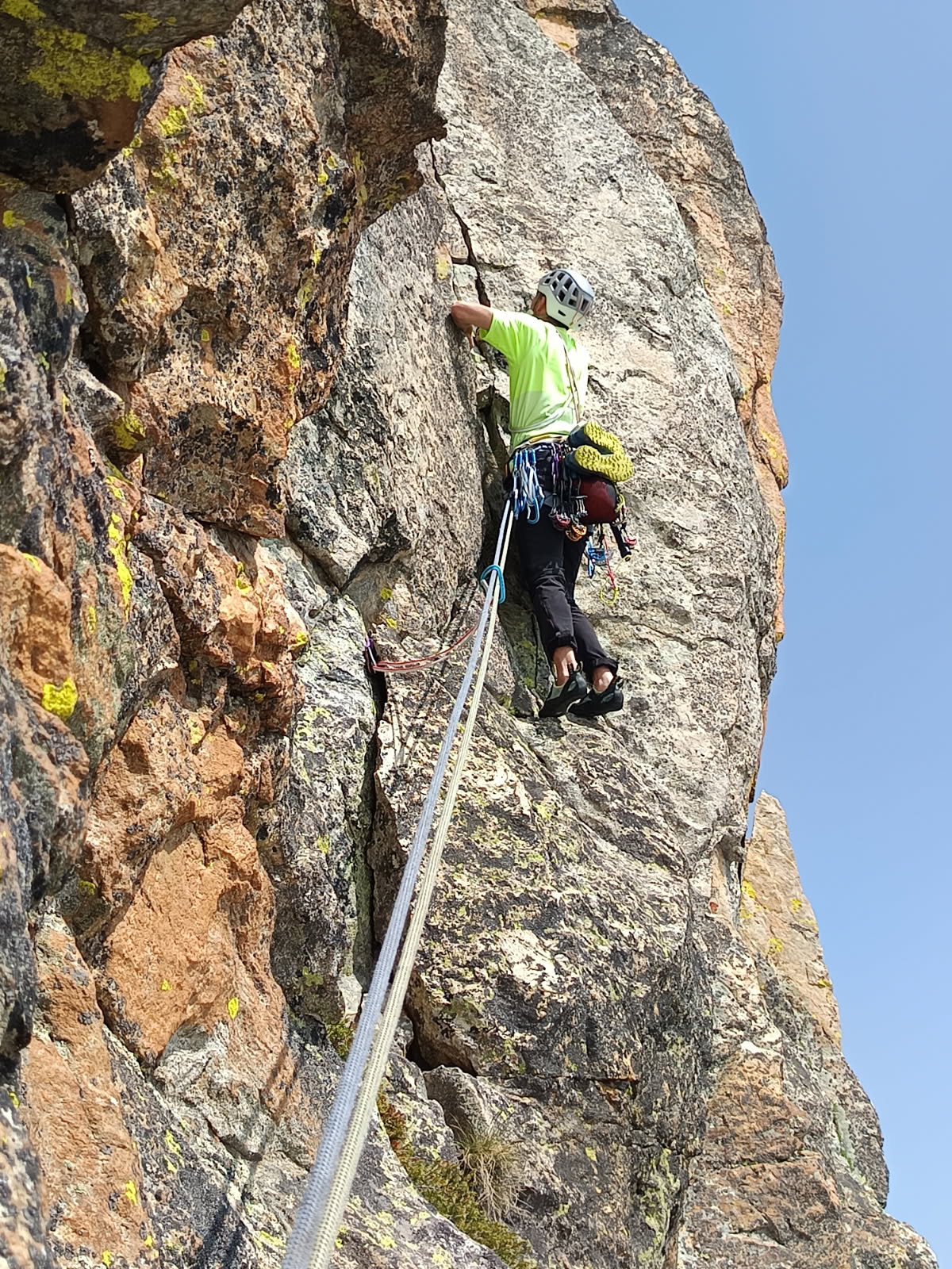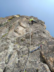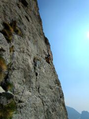 Piacevole via, roccia buona, bei tiri protetta bene, è comunque facilissimo integrare