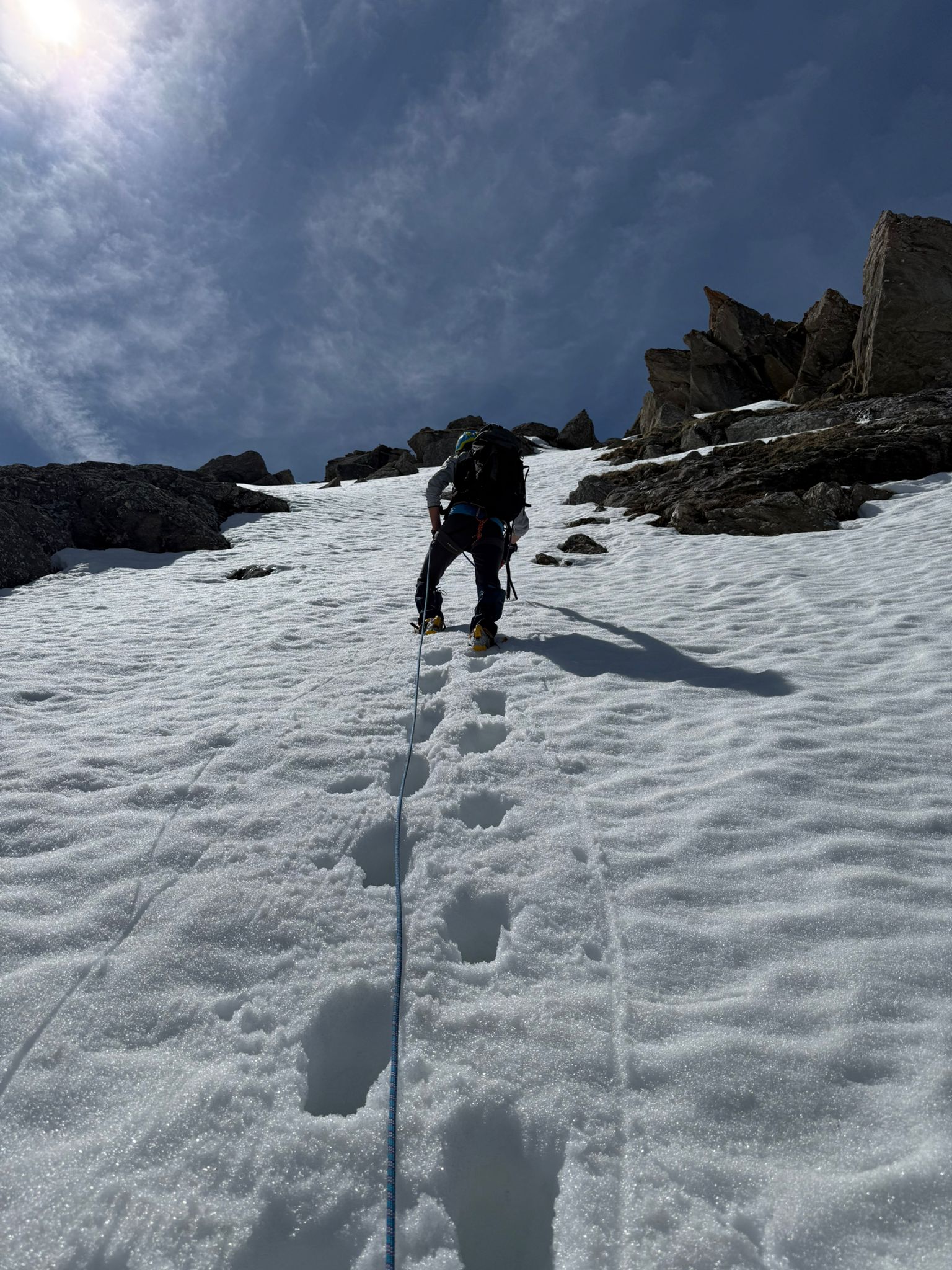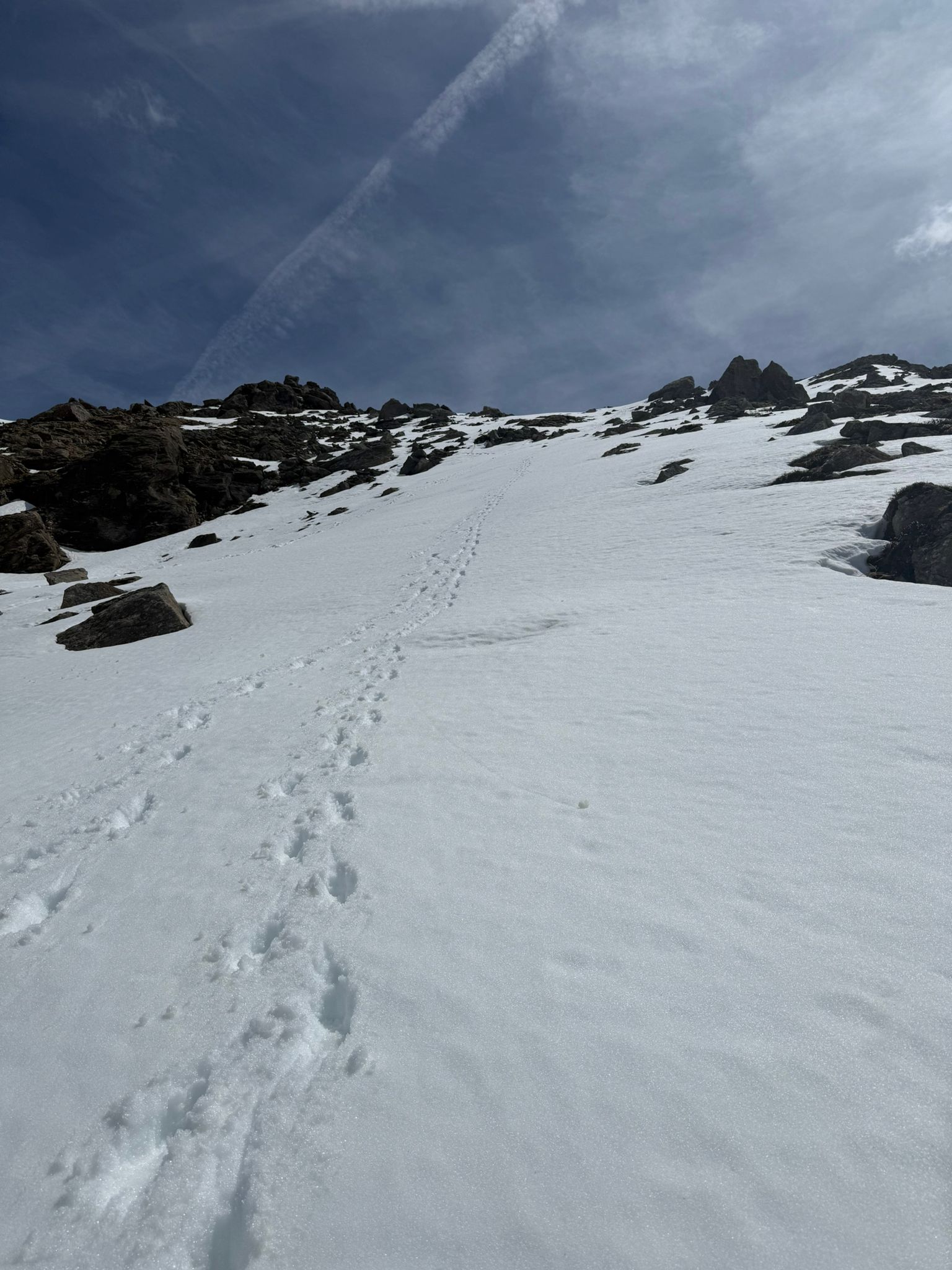 La prima. Saliti con condizioni di neve stabile e continua da quota 2200 necessari ramponi.