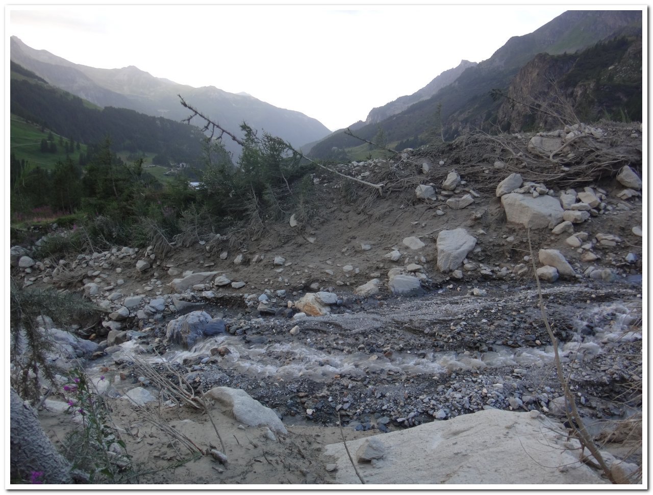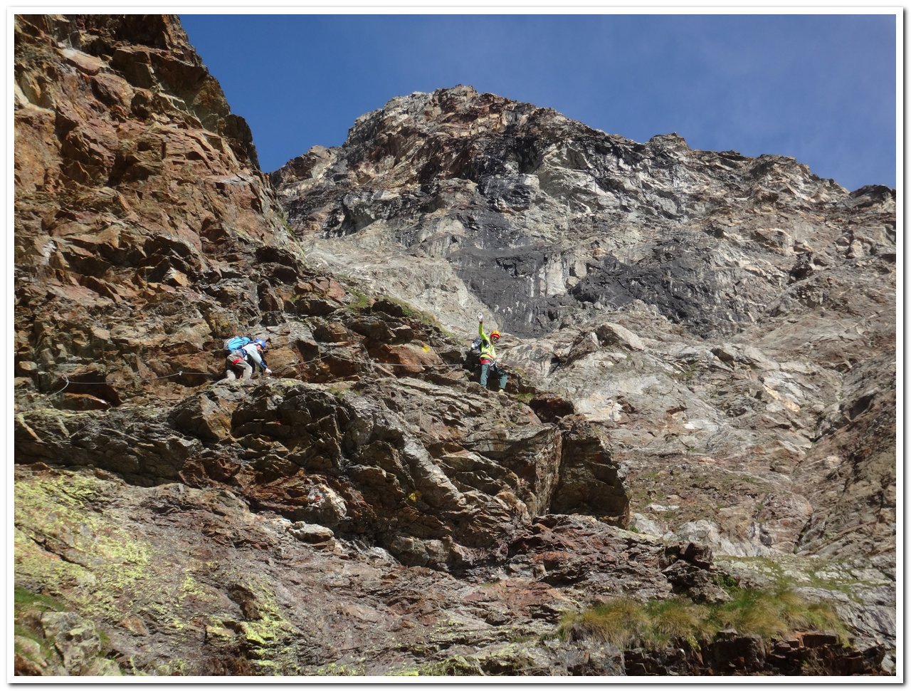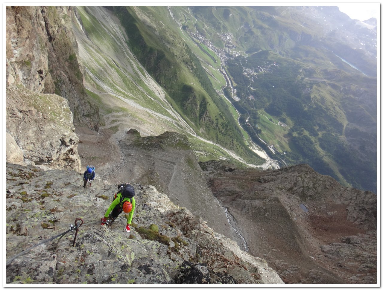 | franz-roten | Il vallone sconvolto dall'alluvione | franz-roten | Vista del vallone dalla palina a 2185 metri | franz-roten | l'inizio della ferrata a 2700 metri | franz-roten | un tratto verticale | franz-roten | gli scalini della ferrata