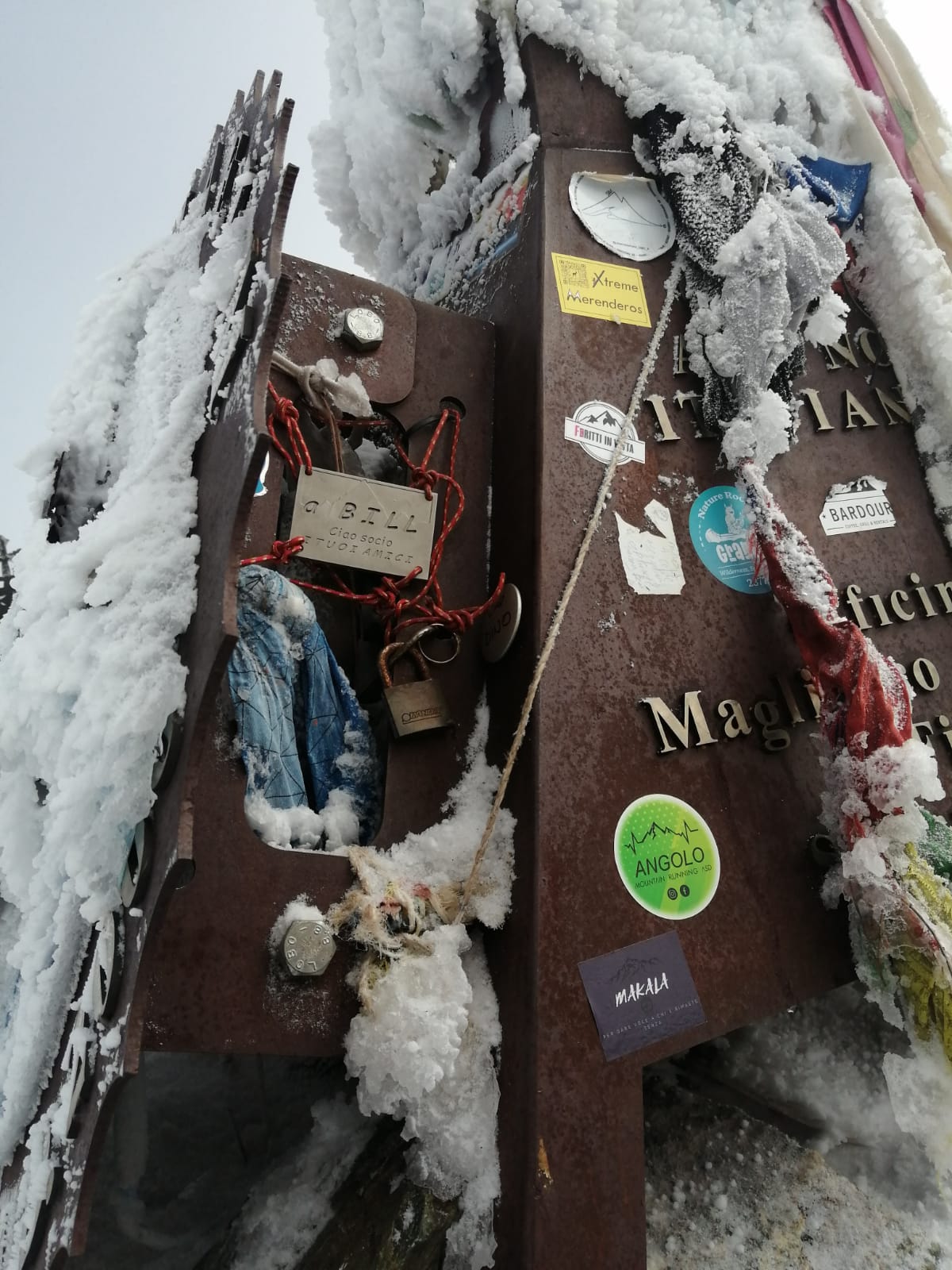 Una grandinata alle 6 ha imbiancato leggermente il percorso Utili rampini x viaggiare con tranquillità
