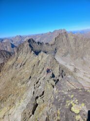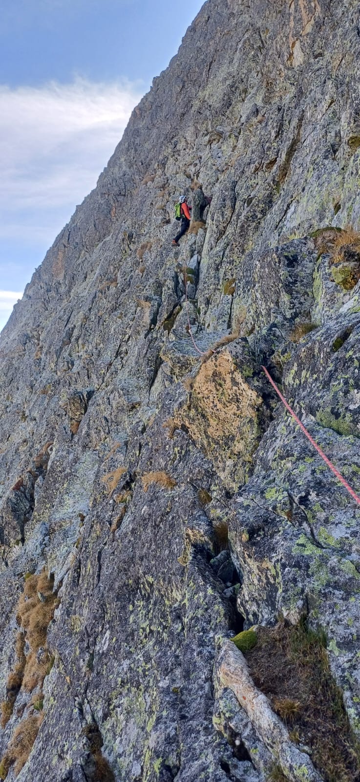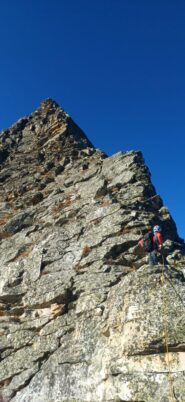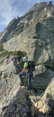 Siamo saliti nel canalino alla base della cresta O come da relazione (alcuni passi II delicati) poi abbiamo effettuato 3 tiri di corda sul versante…