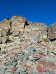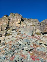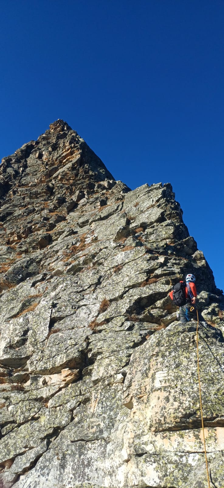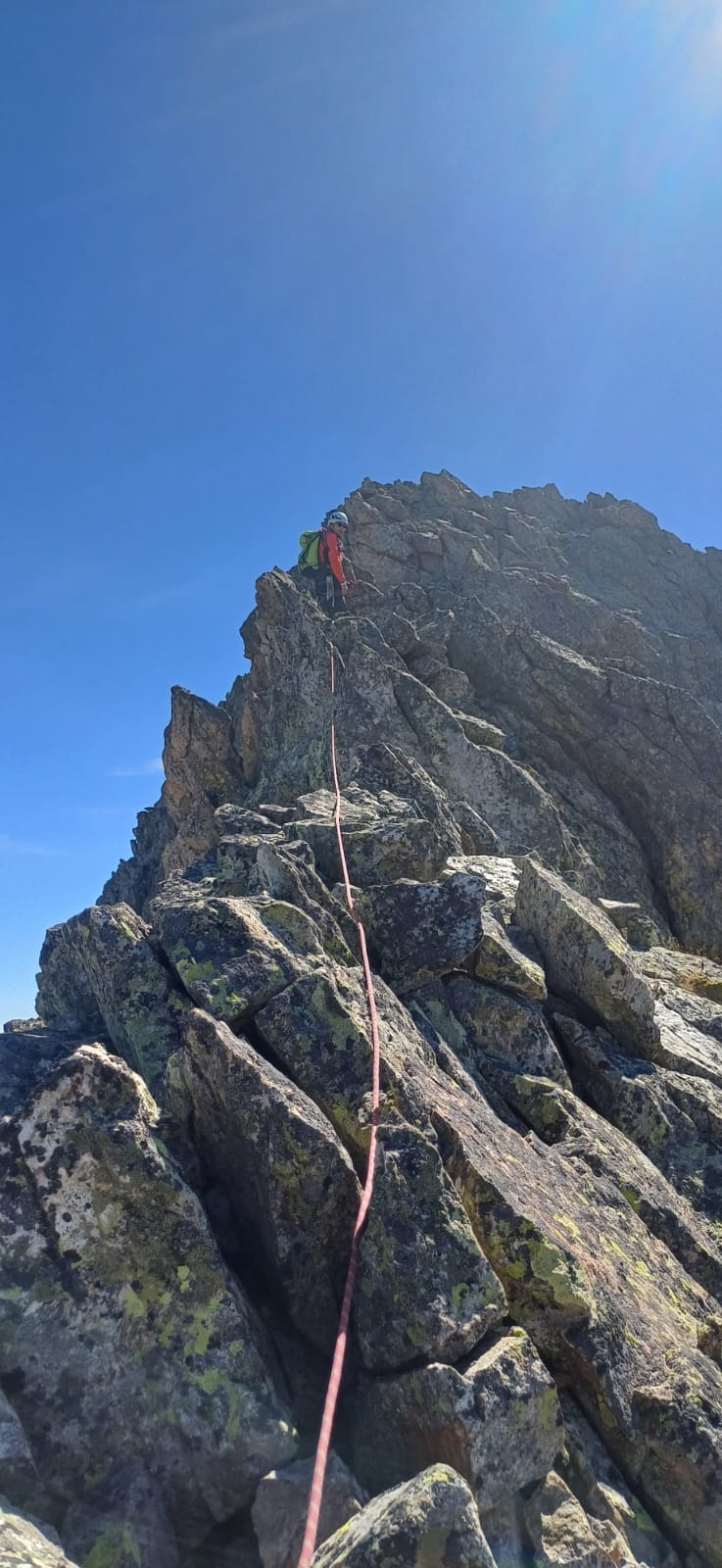 Via di cresta non troppo lunga e divertente. Abbiamo iniziato la cresta appena sopra la lapide bianca, anche noi nel finale siamo saliti sulla paretina…