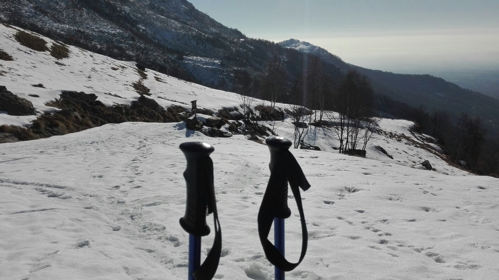 Parcheggiato 100 metri sopra al bivio dato che la presenza di ghiaccio mattutino sullo sterrato rendeva impossibile salire più su. Sci a spalle sino…