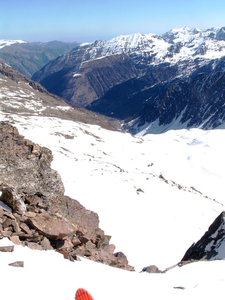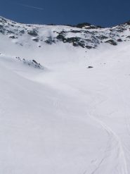 La neve cede molto e presto, condizioni da fine maggio. Sci ai piedi in vetta sfruttando ottima traccia che sale per metà del canale di…