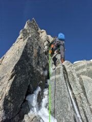 Bella! Breve ma intensa! Gradi strettini, roccia buona, protezioni in stile Michelin quindi non certo abbondanti ma in genere dove serve lo spit c'è, anche se…