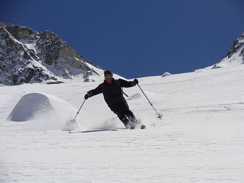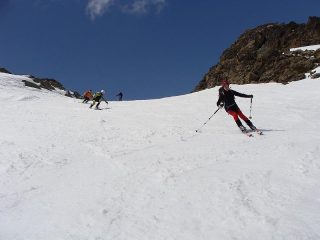 | fyplom | Salendo sui pendii mediani | fyplom | sguardo verso il vallonetto | fyplom | il canale ovest | fyplom | panorama verso la grande casse e il monte bianco | fyplom | arrivo in punta | fyplom | telemark