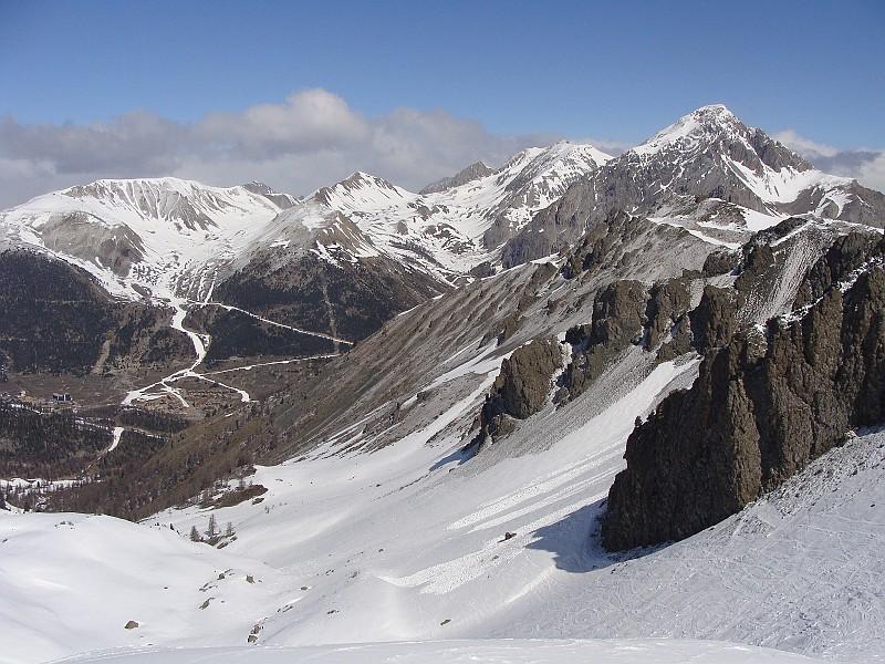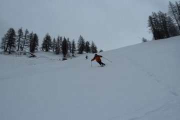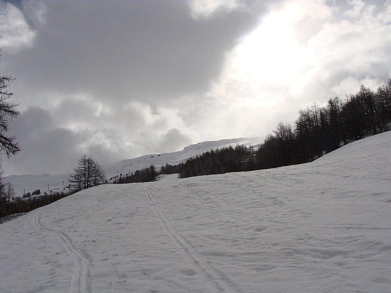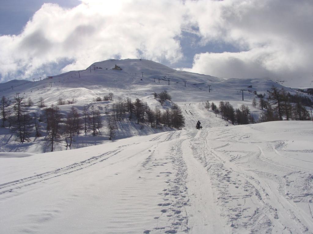 | fyplom | salita a sinistra delle seggiovie | fyplom | poco sotto la zona ristorante con vista del Viso | fyplom | sguardo indietro | fyplom | discesa sulle piste chiuse