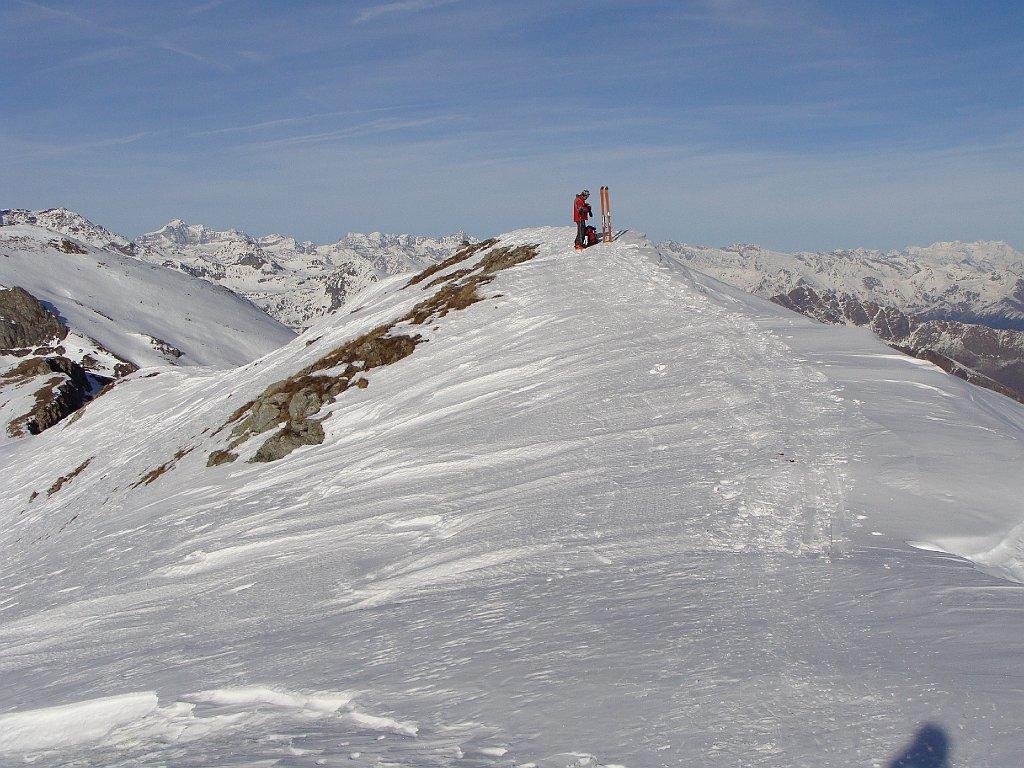 | fyplom | il canale sopra l'alpeggio | fyplom | il pendio prima di uscire in cresta | fyplom | uscita in cresta | fyplom | la punta | fyplom | il monte bianco | fyplom | il monte rosa | fyplom | il rutor