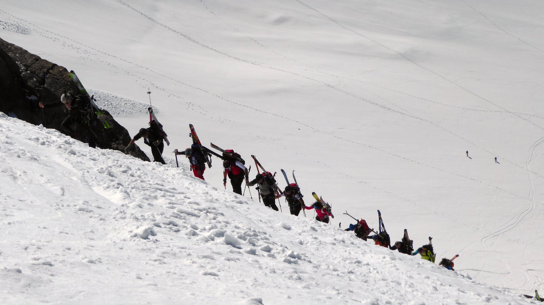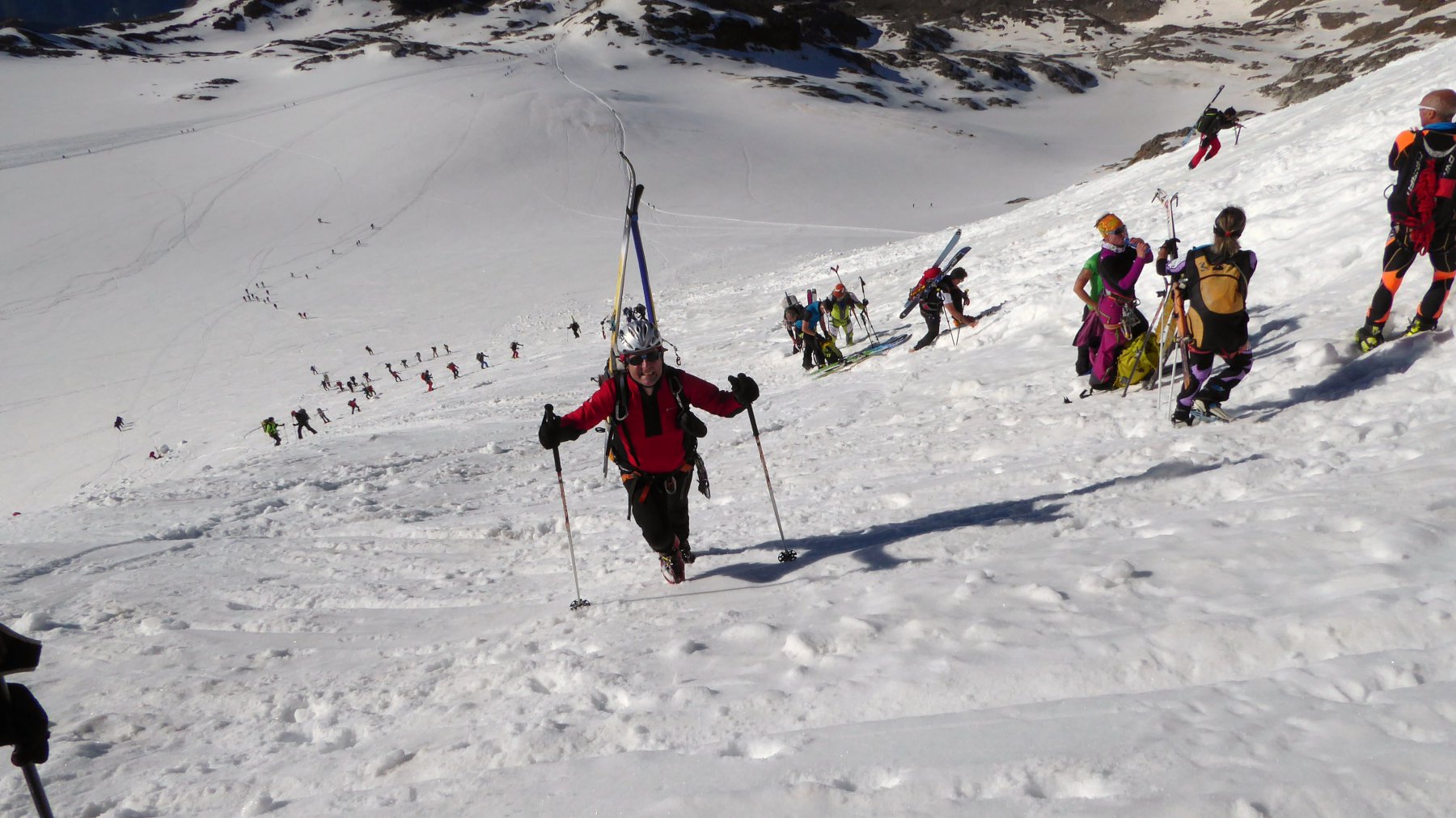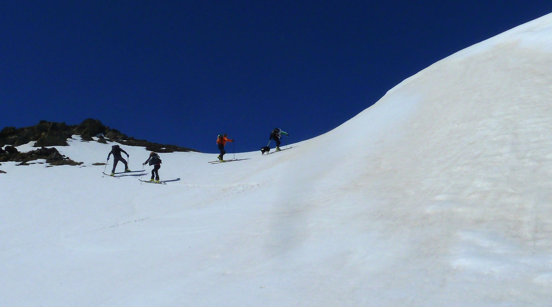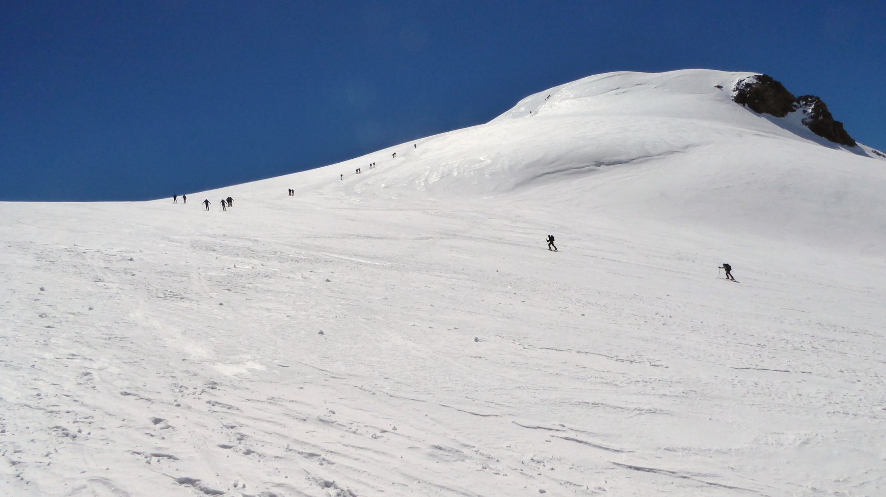 | fyplom | salendo nel canale | fyplom | tanti con gli sci | fyplom | sul ghiacciaio sopra i rifugi | fyplom | in vista della cima | fyplom | in cima pronti per la discesa | fyplom | in discesa | fyplom | il canale di salita subito dopo la partenza