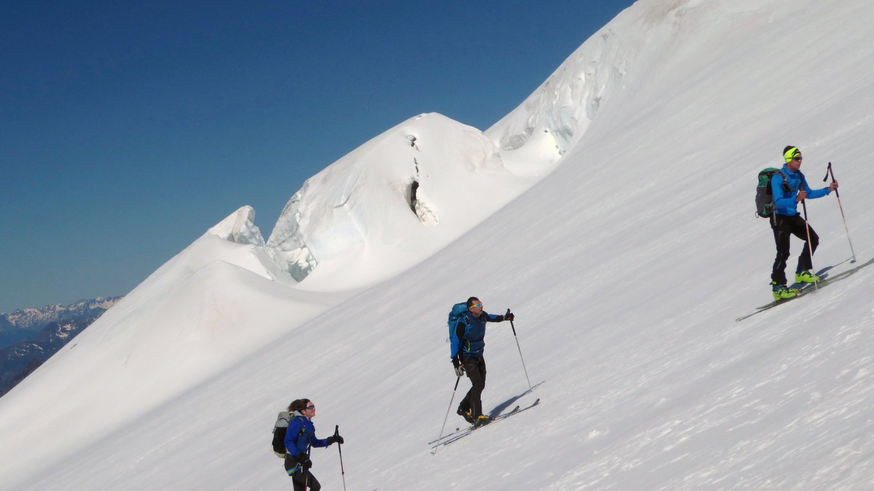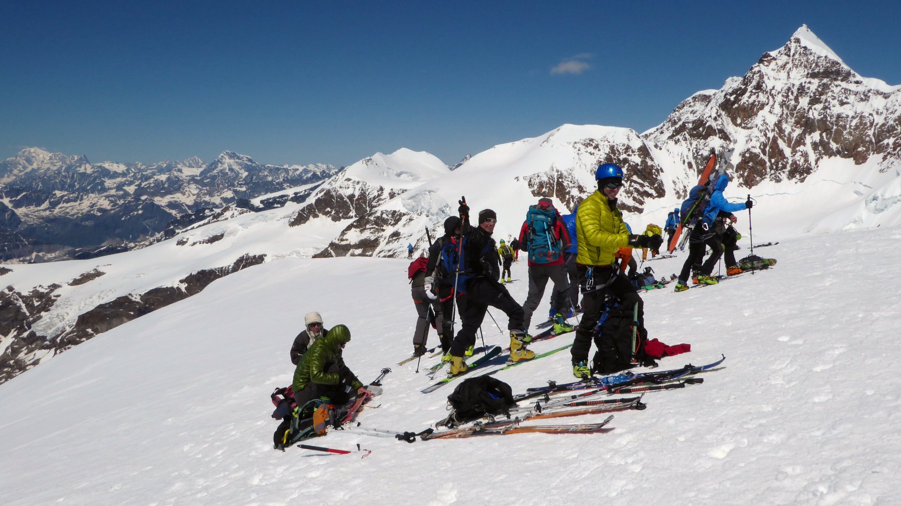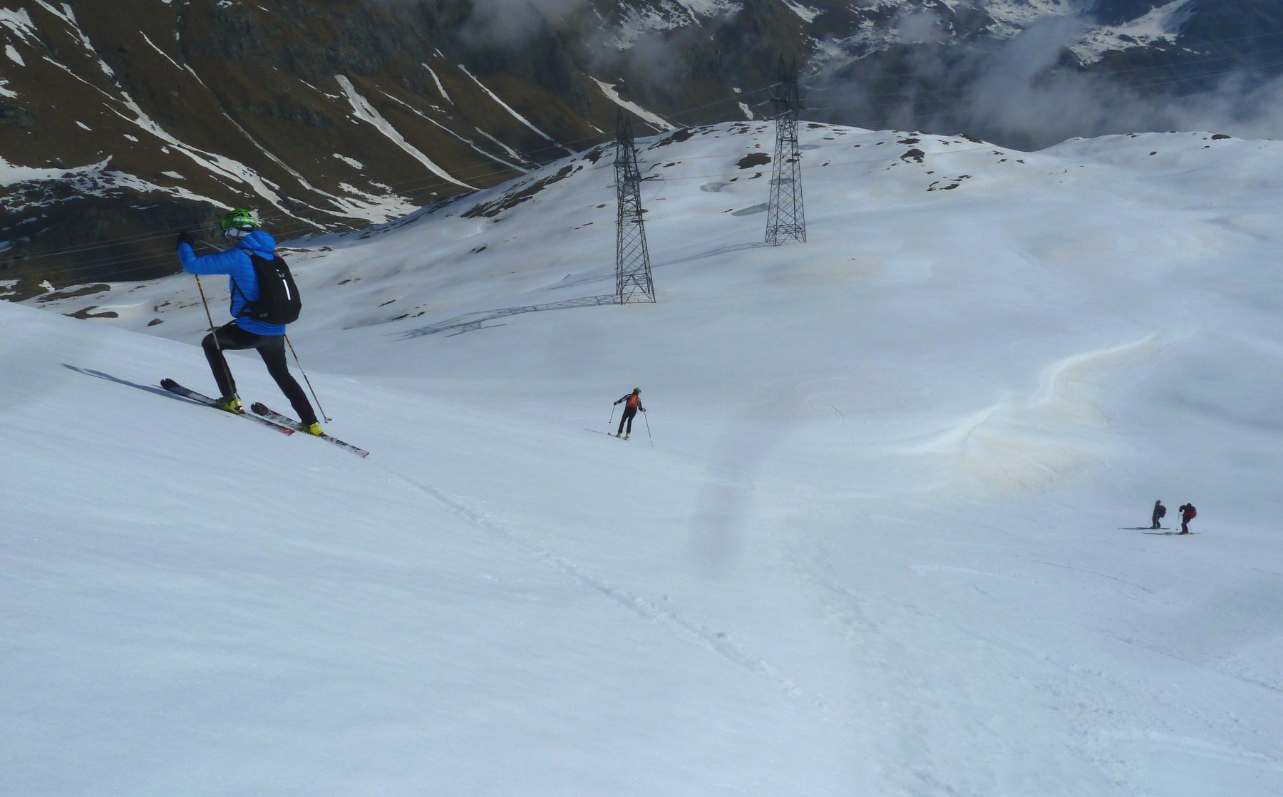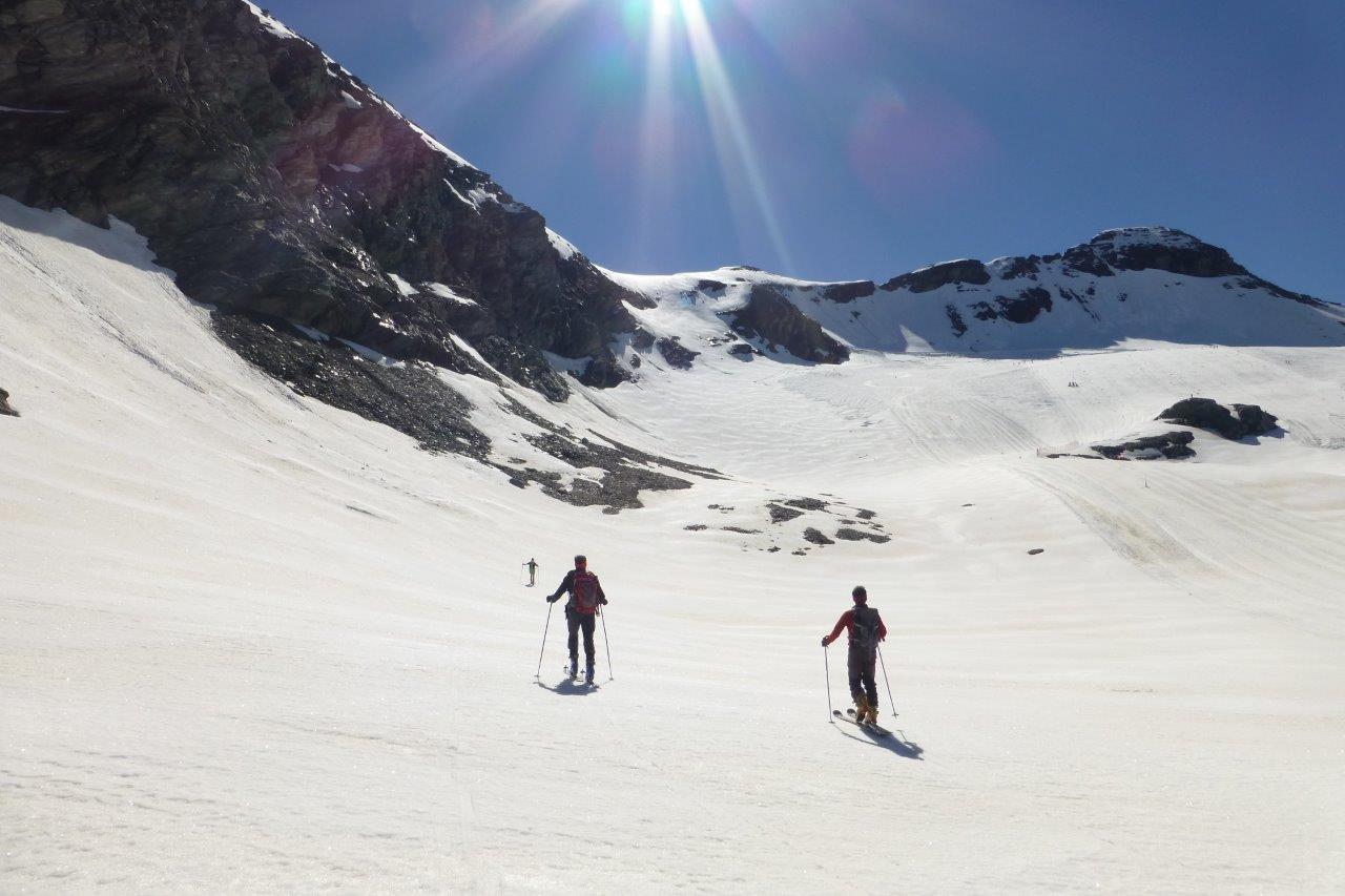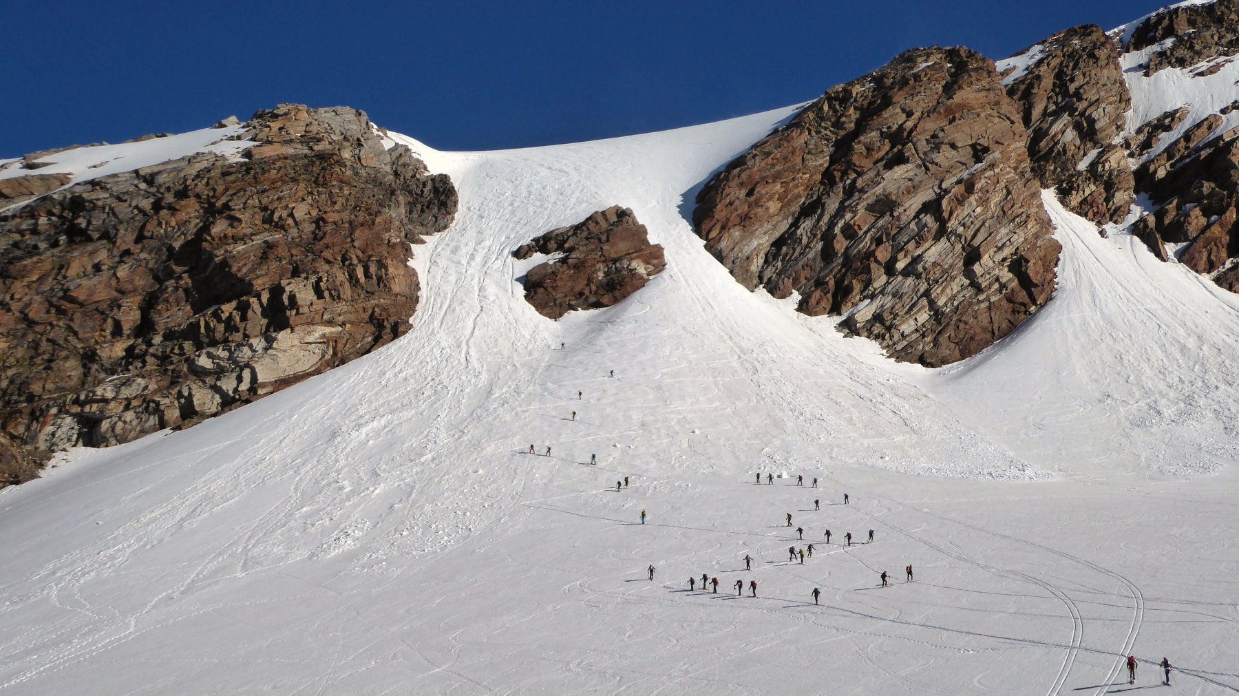 | fyplom | salendo nel canale | fyplom | tanti con gli sci | fyplom | sul ghiacciaio sopra i rifugi | fyplom | in vista della cima | fyplom | in cima pronti per la discesa | fyplom | in discesa | fyplom | il canale di salita subito dopo la partenza