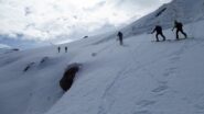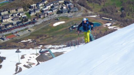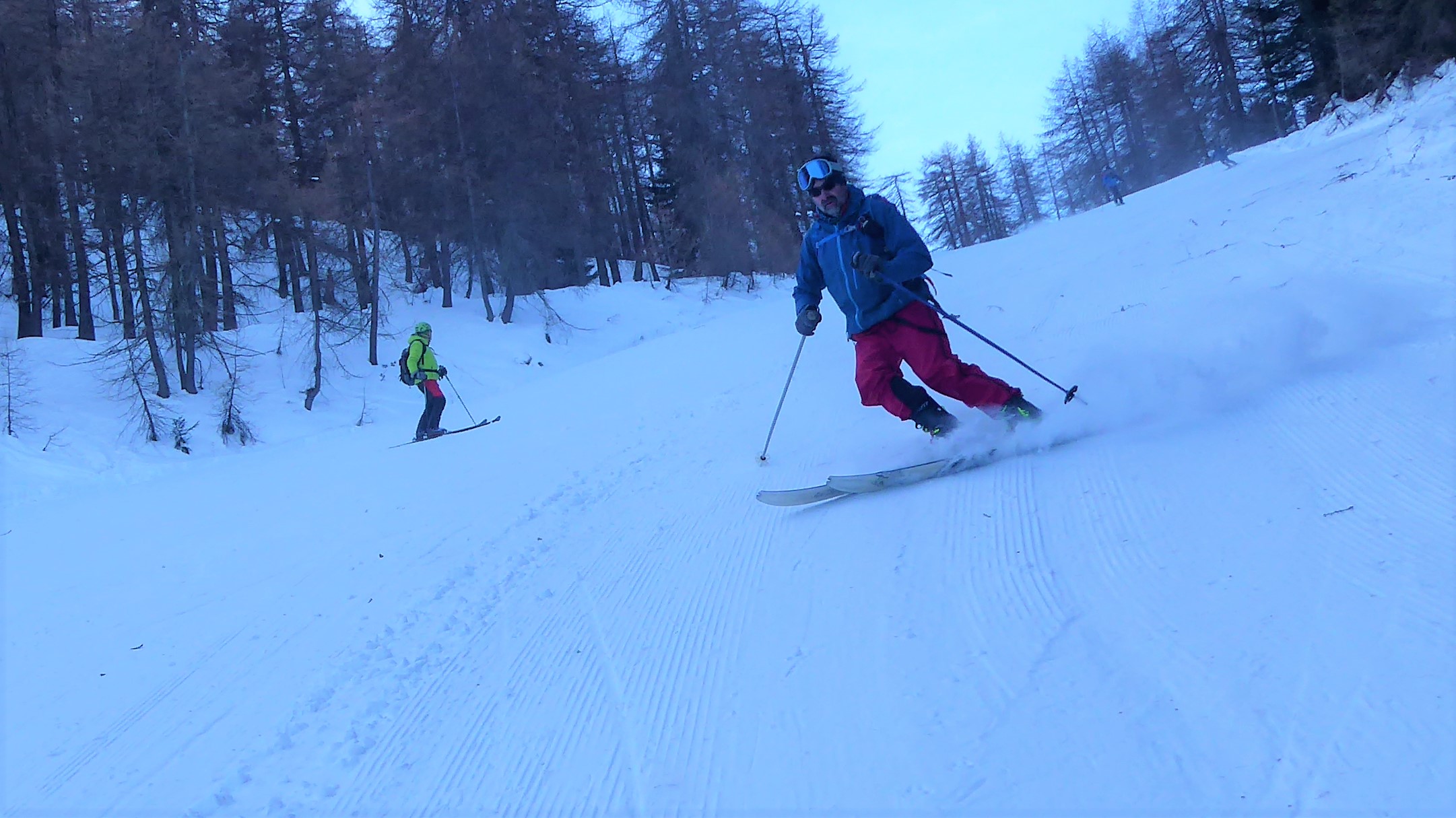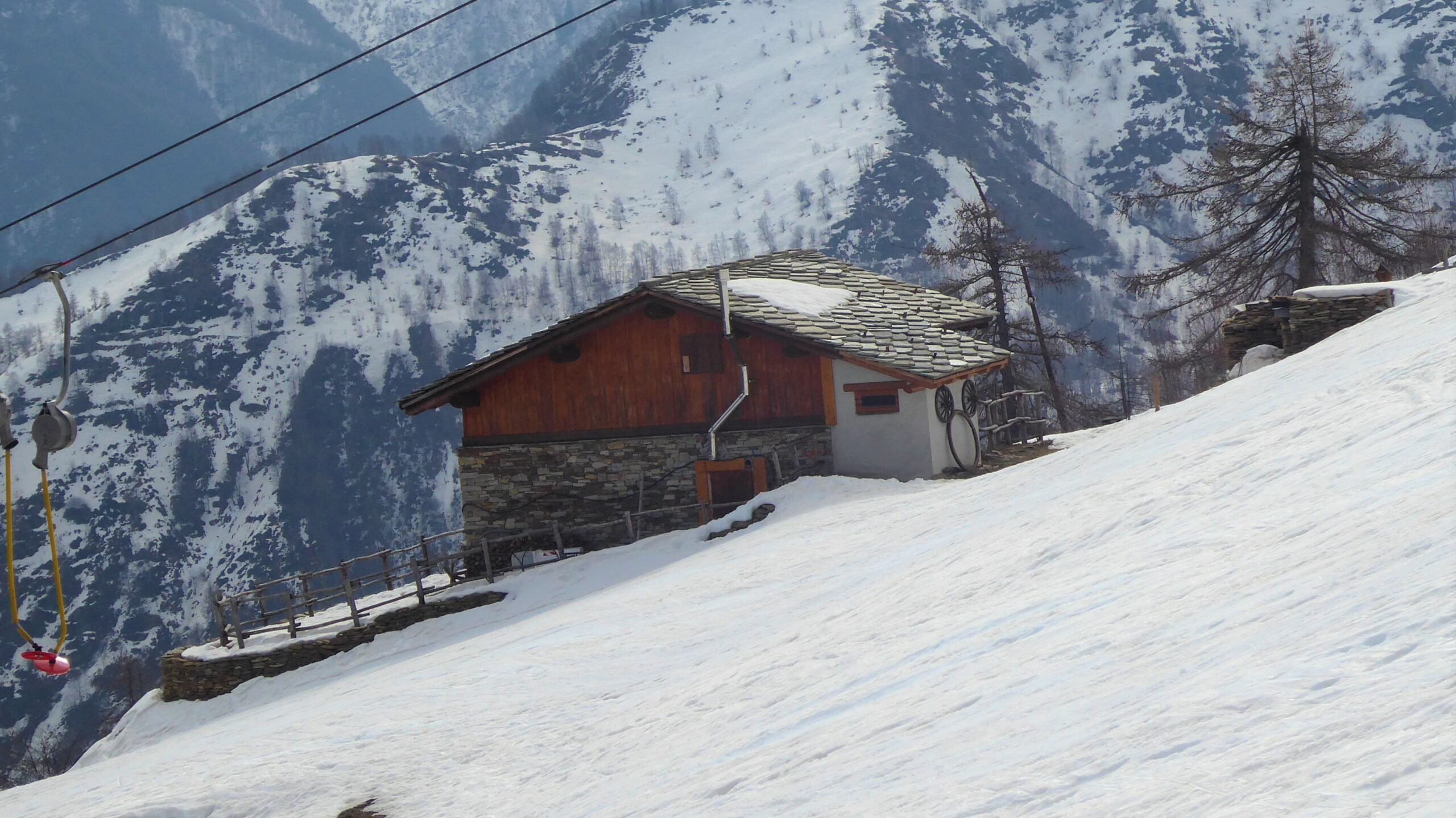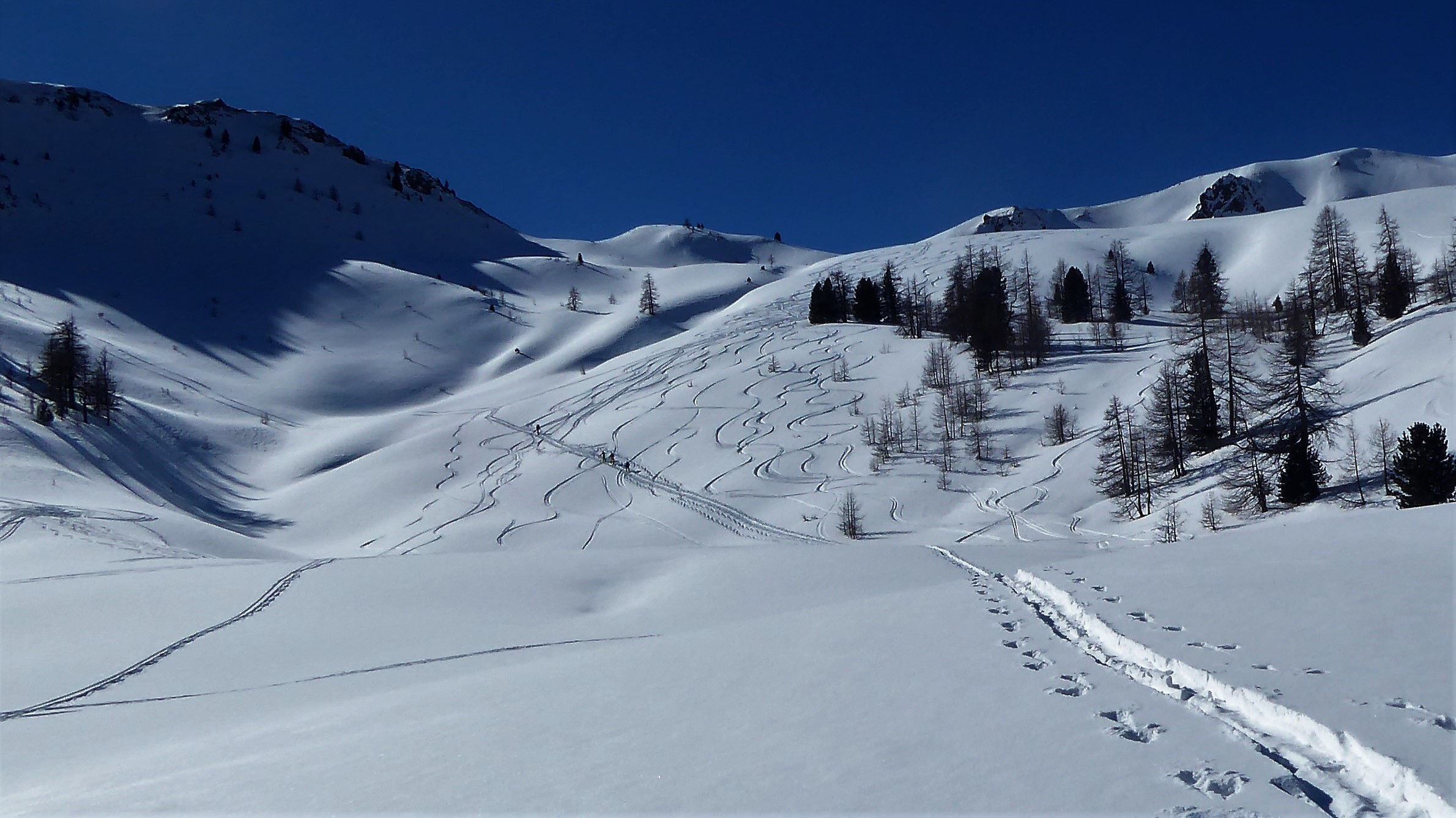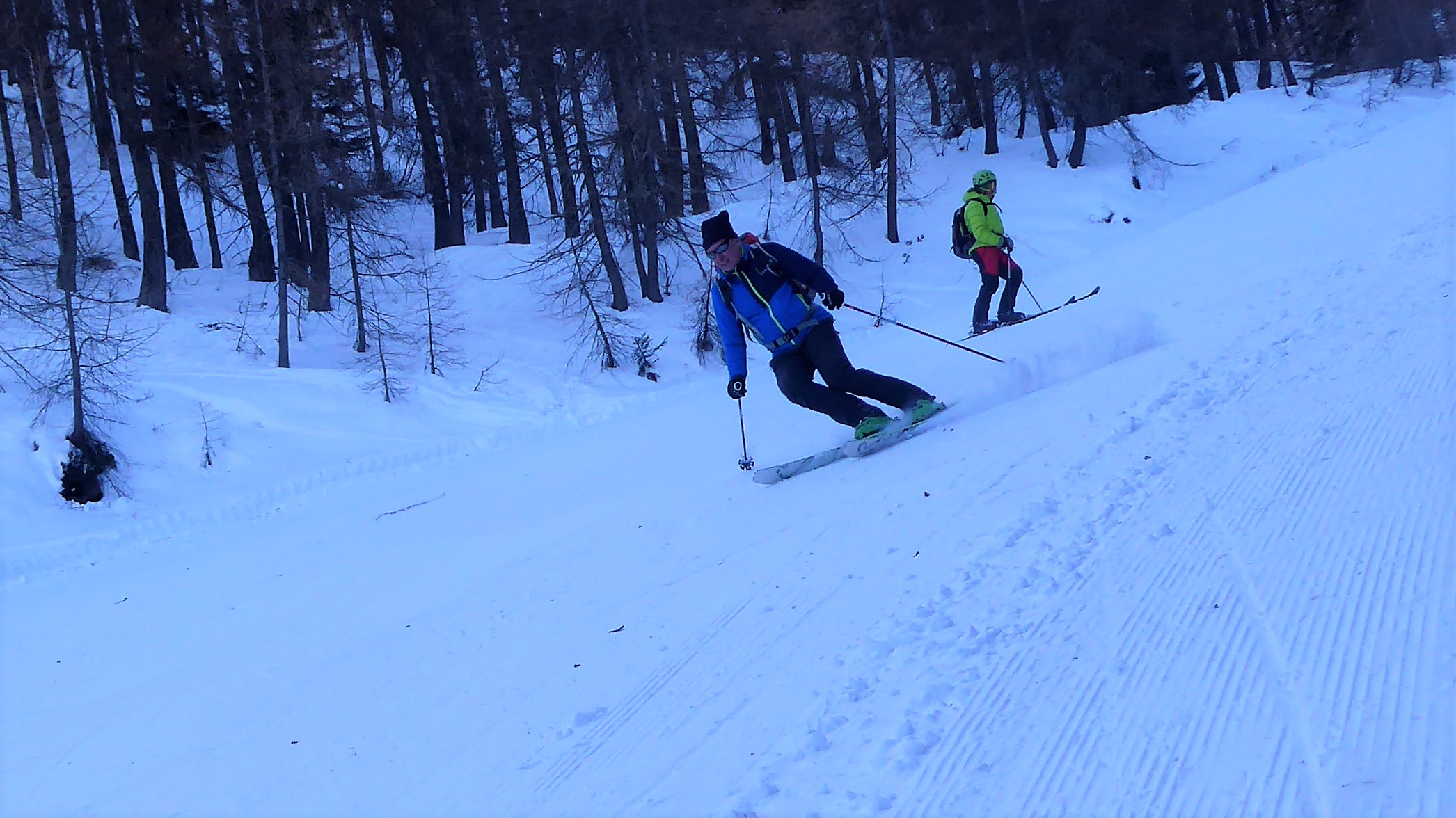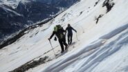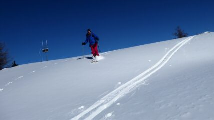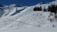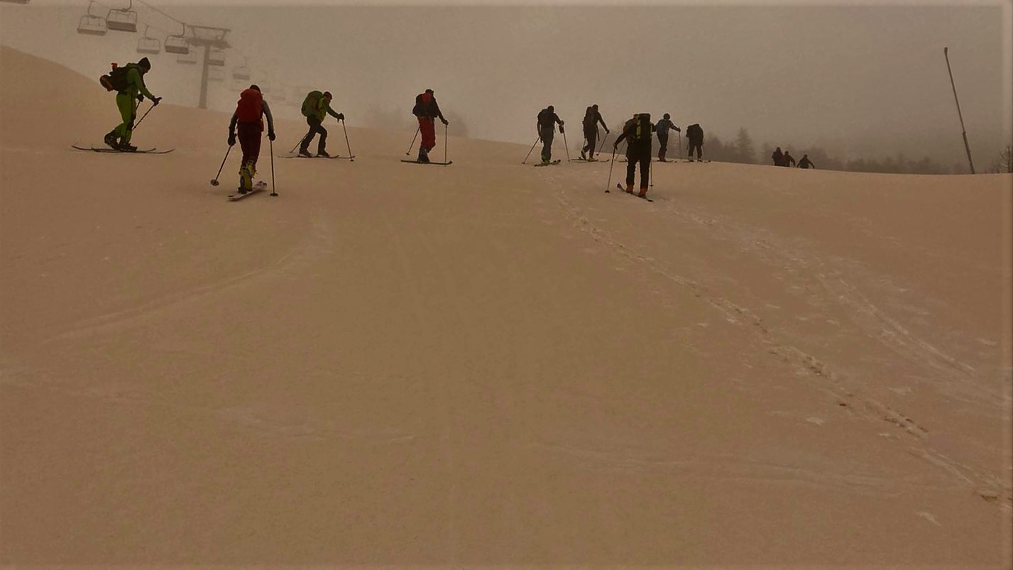 Saliti dalla pista di Melezet quella chiusa agli allenamenti a destra e usato i rampant sui ripidi pendii, arrivati a quota del ristorante ci siamo…