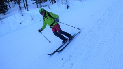 Lasciata l'auto a quota 1100 per presenza di neve ghiacciata sulla strada. Con sci in spalle su sentiero fino a raggiungere la neve continua. Nessuna…