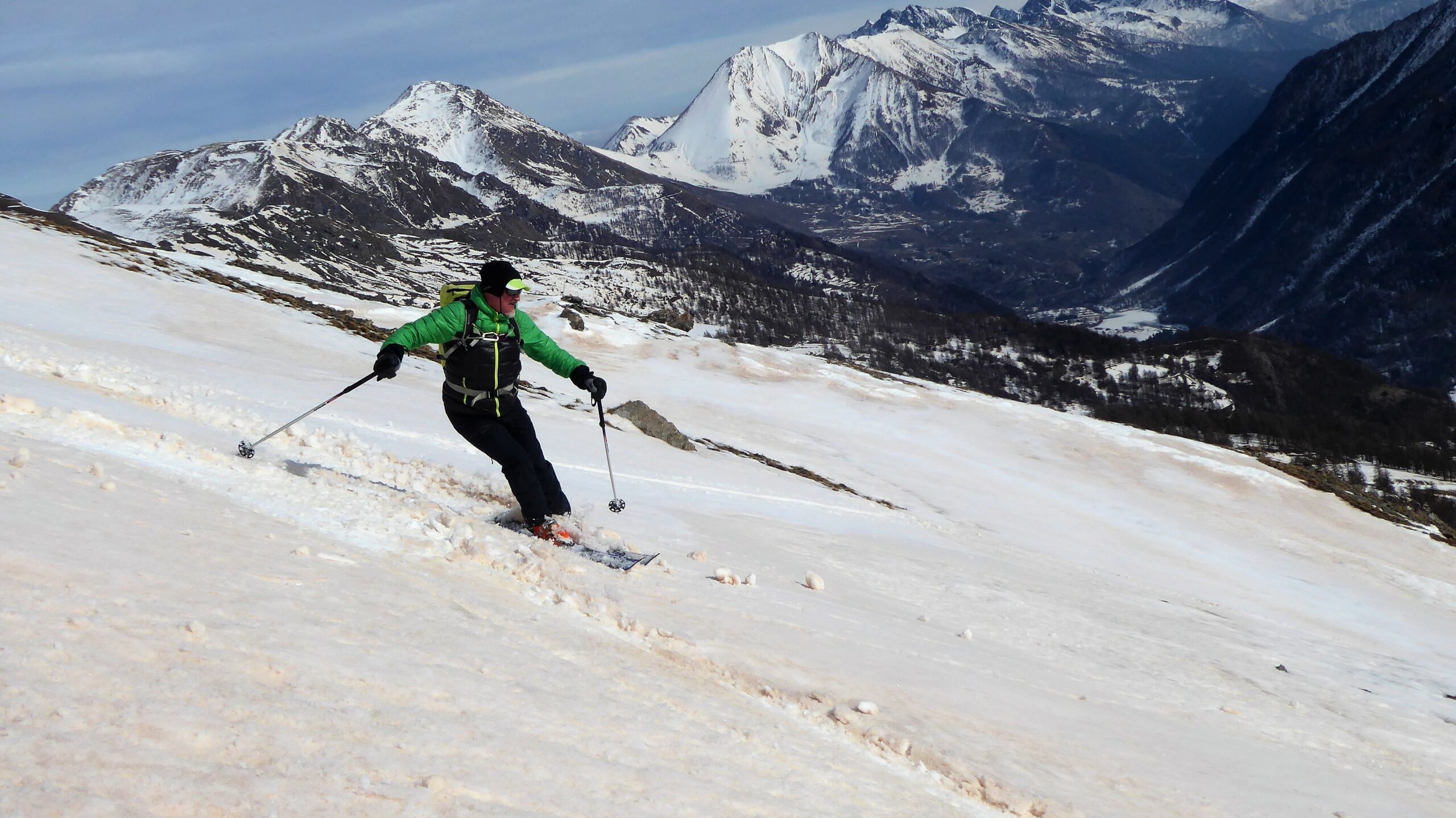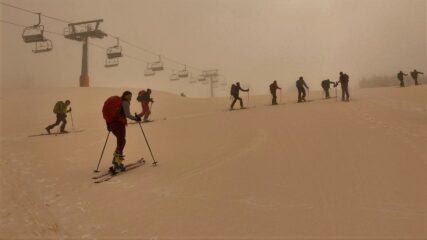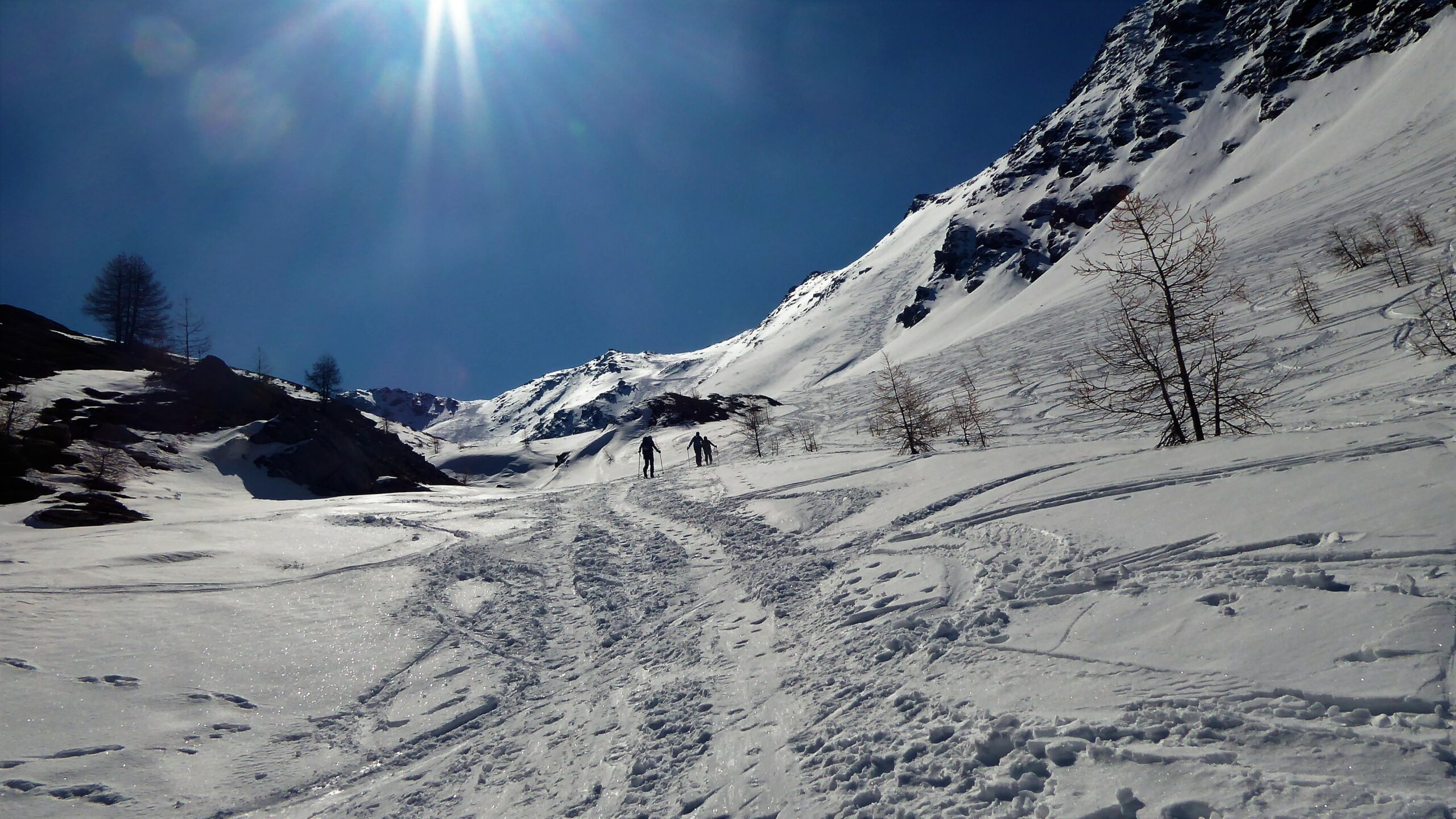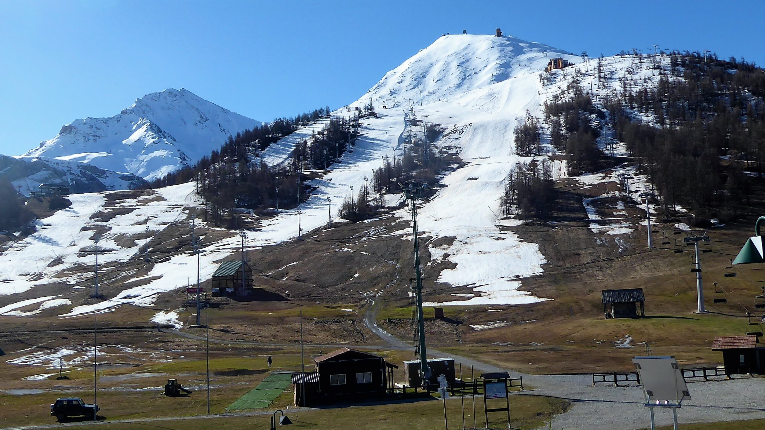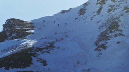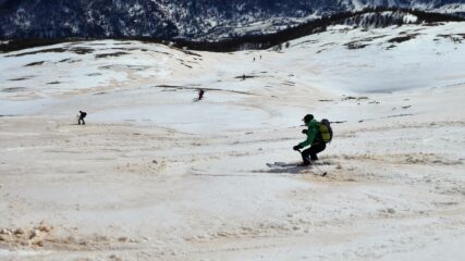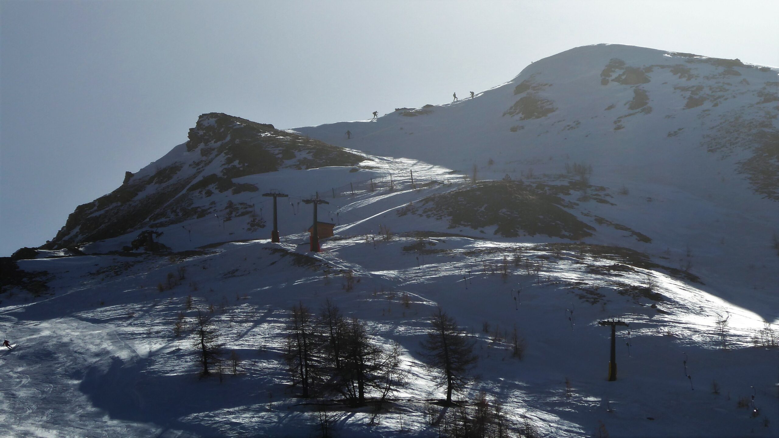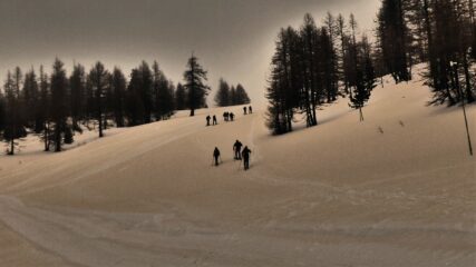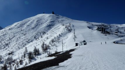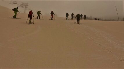 Da Claviere e su stradina passando dalla capanna Gimont e risalendo le piste con neve parzialmente battuta dai gatti e dai numerosi passaggi. Scesi sempre…