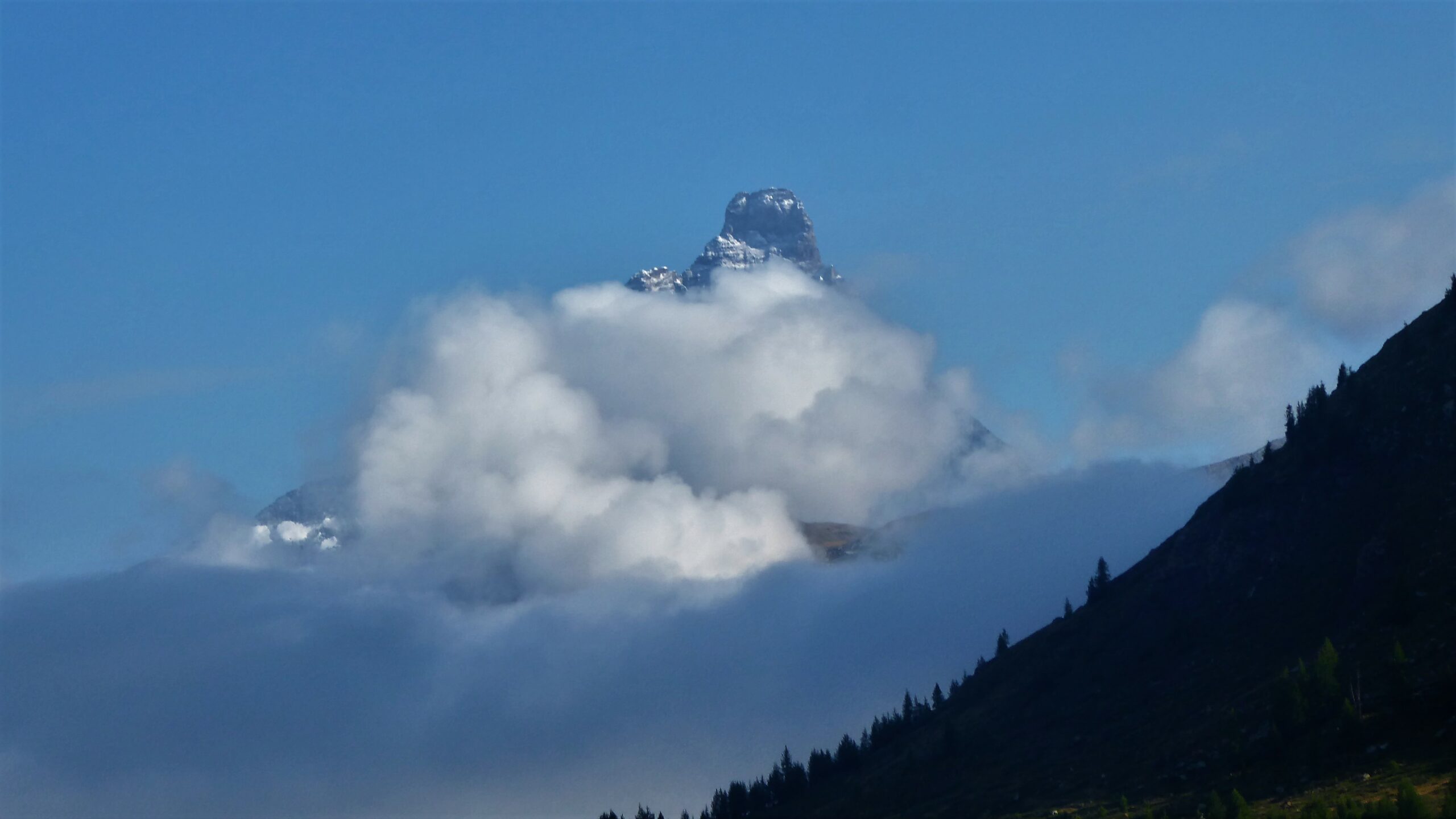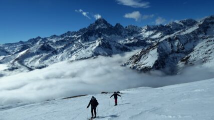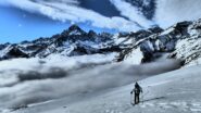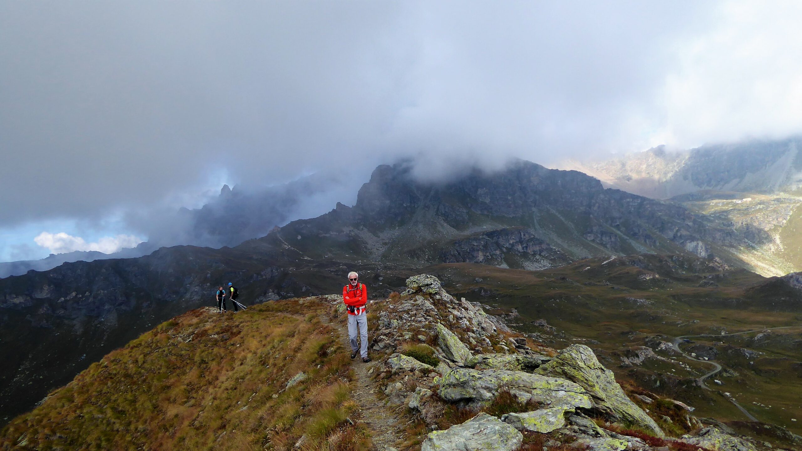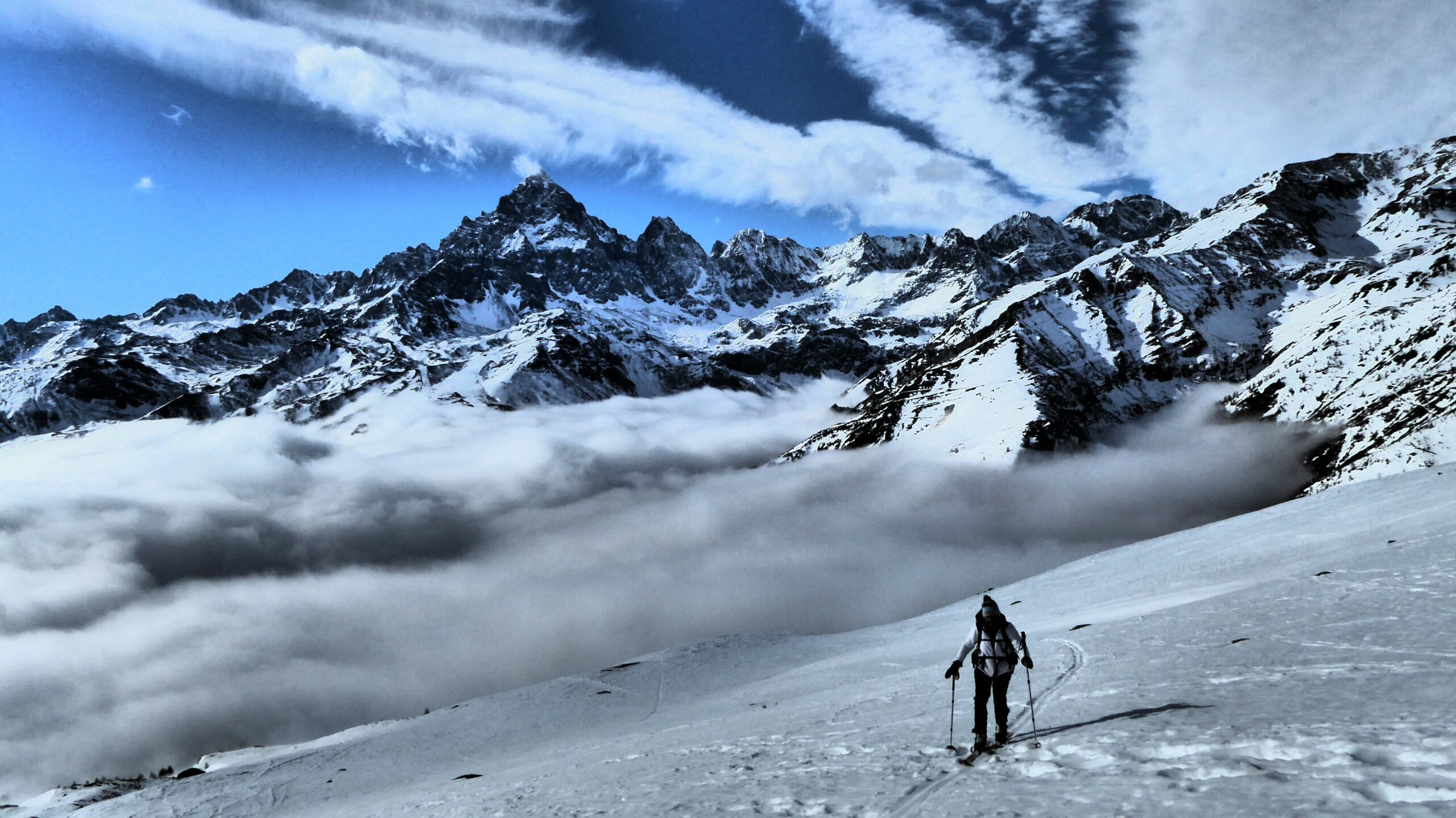Strada pulita da Borgo a Brich. Partiti da 1400 m con nuvole in basso che abbiamo bucato a quota 1700. Vento forte in cima ma…