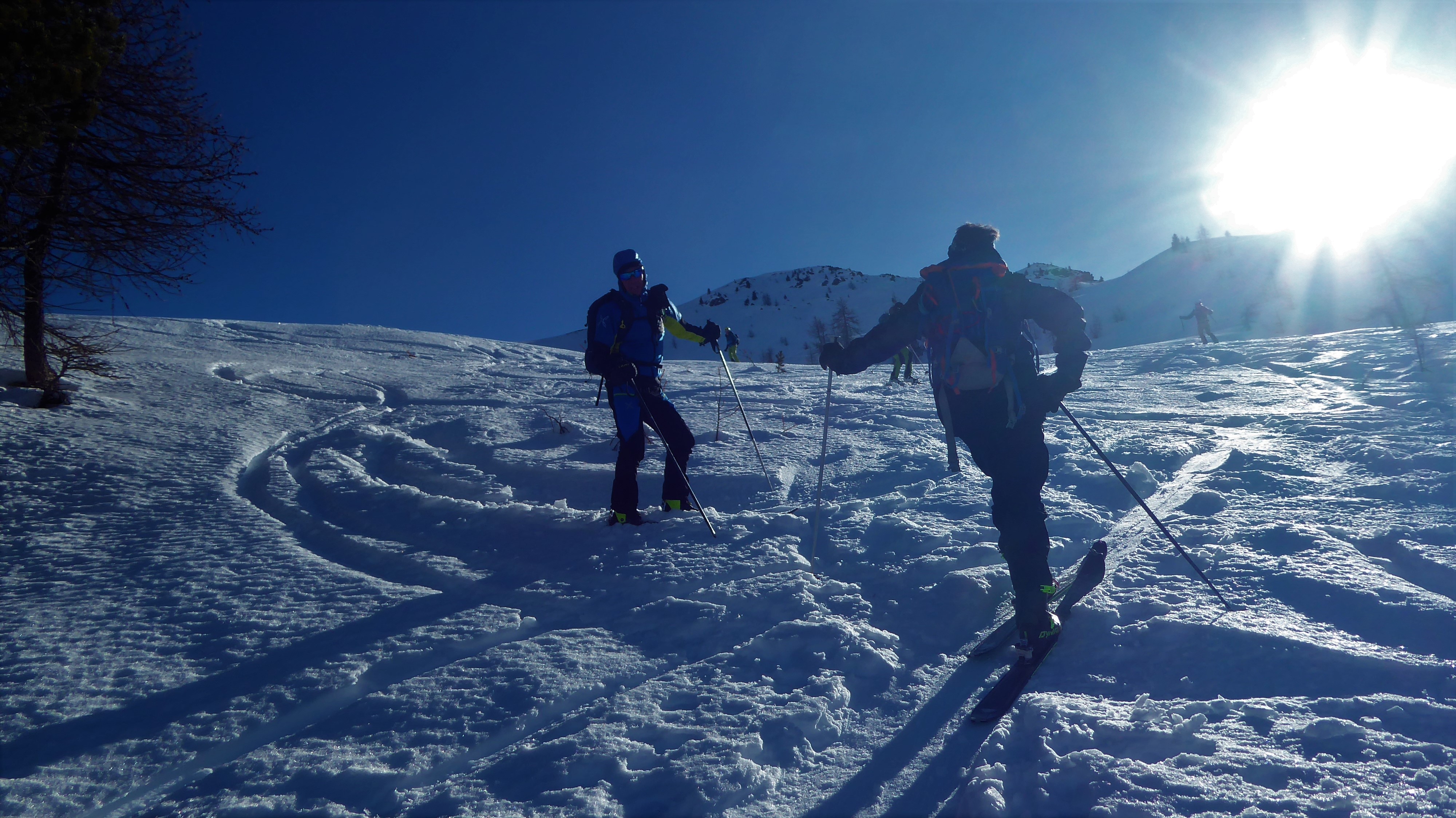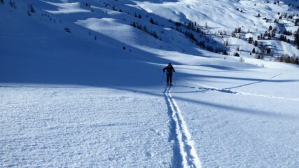 Fatto il giro in senso antiorario. Saliti di 150 m sopra pian Juc in direzione del mon Mars e poi tornati indietro per troppa neve…
