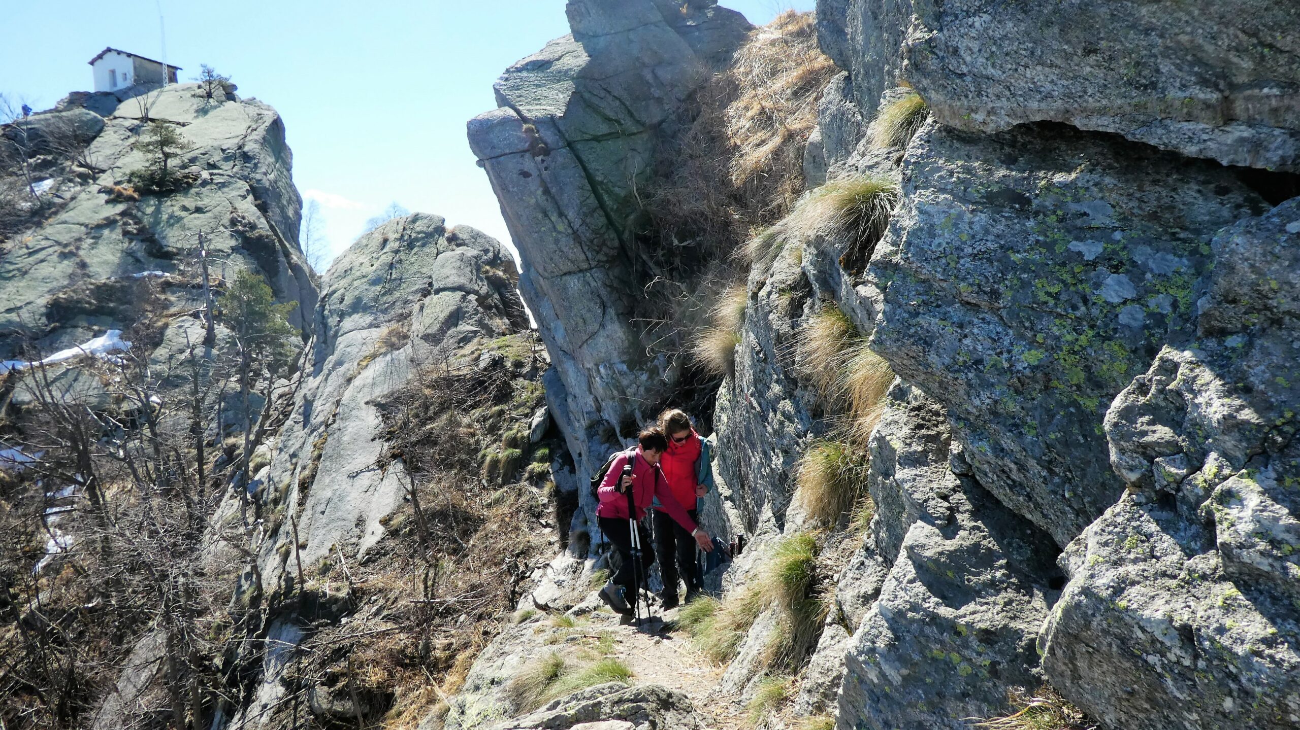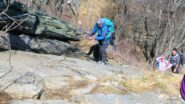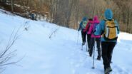 Partiti da Bastianoni, percorso di guerra con numerosi alberi sul sentiero scavalcandone alcuni e strisciando sotto per altri, chiazze di neve sulla parte più alta…