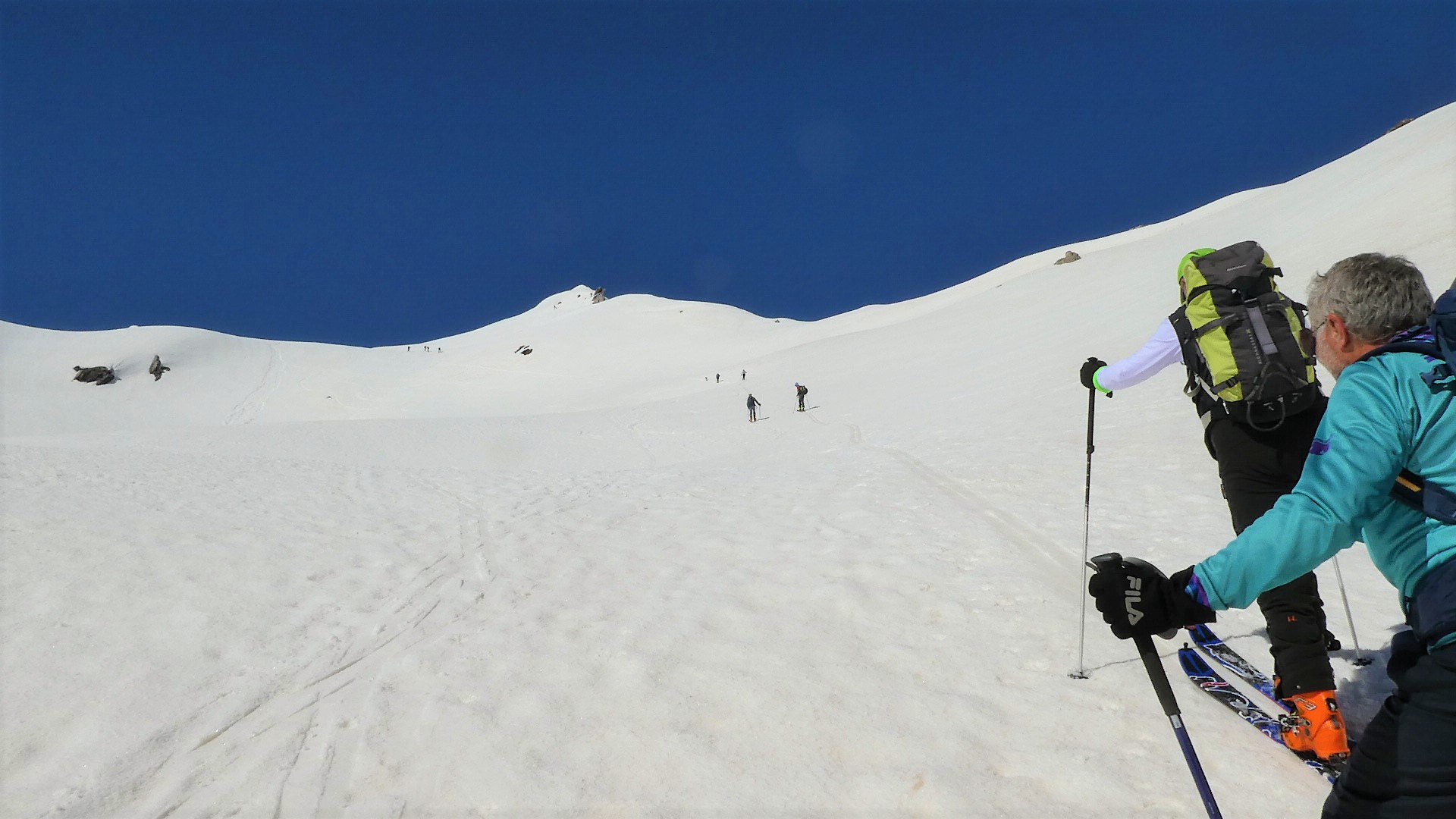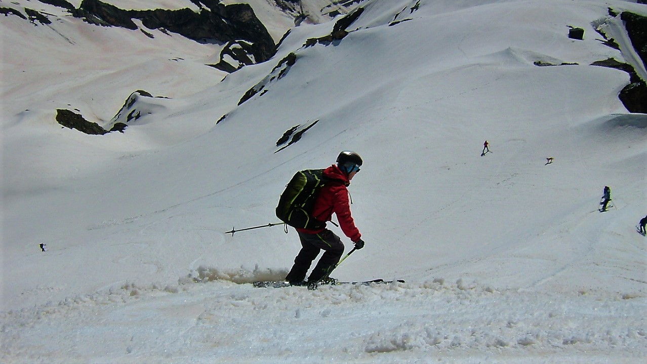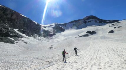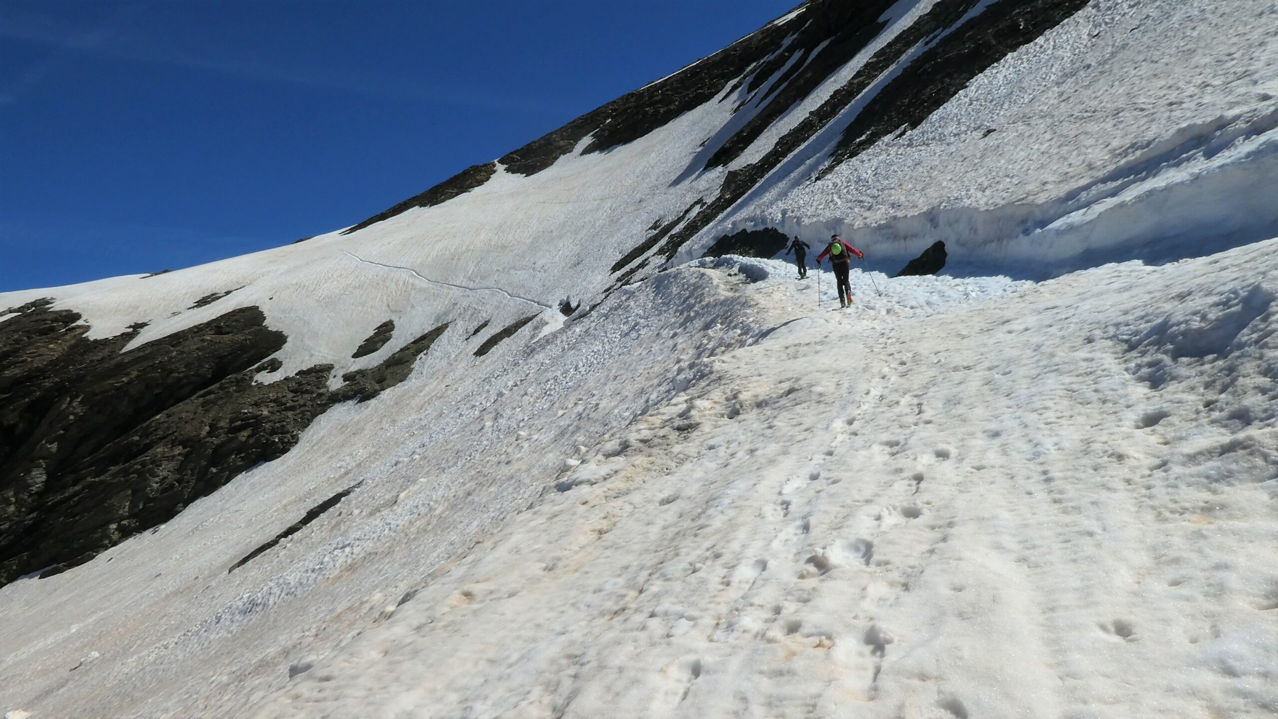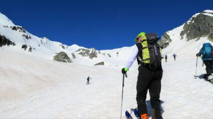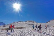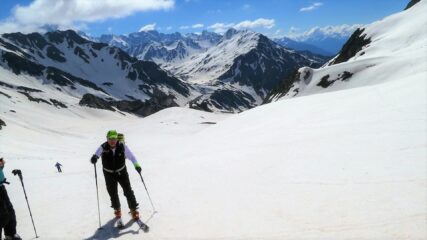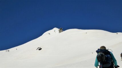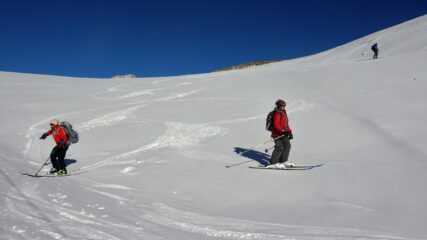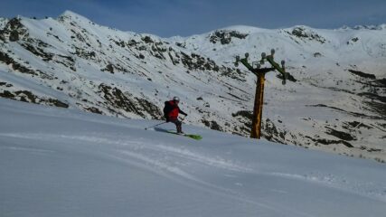 Partiti subito con sci e neve continua fino in cima. Giornata leggermente velata ma ottima sciabilita' su tutto il percorso. In alto neve farinosa compressa,…