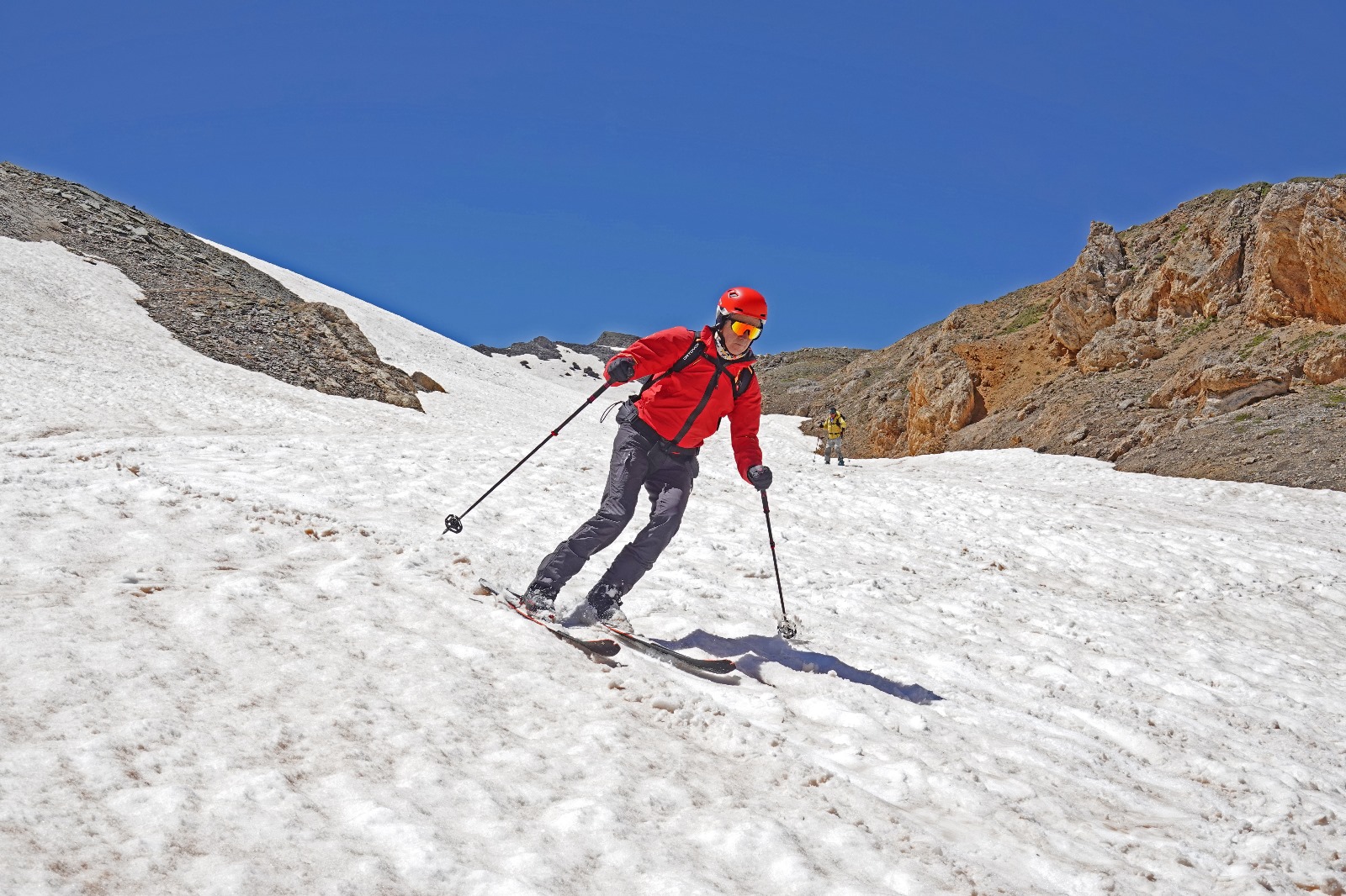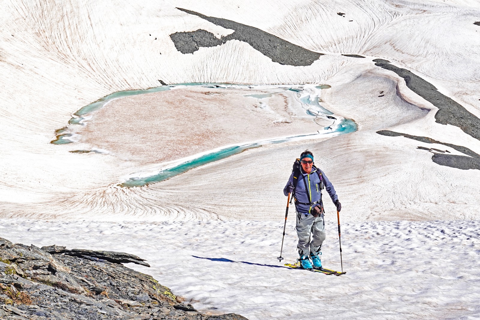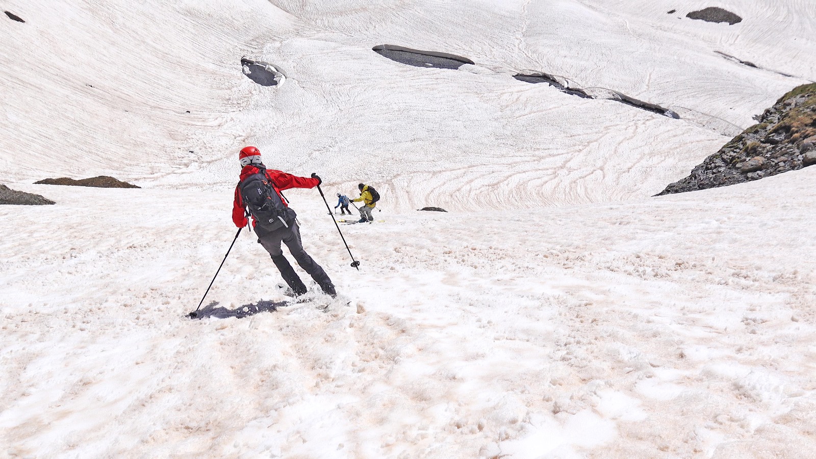 Partiti subito con sci e neve continua fino in cima. Giornata leggermente velata ma ottima sciabilita' su tutto il percorso. In alto neve farinosa compressa,…