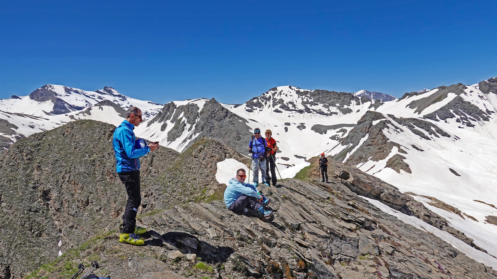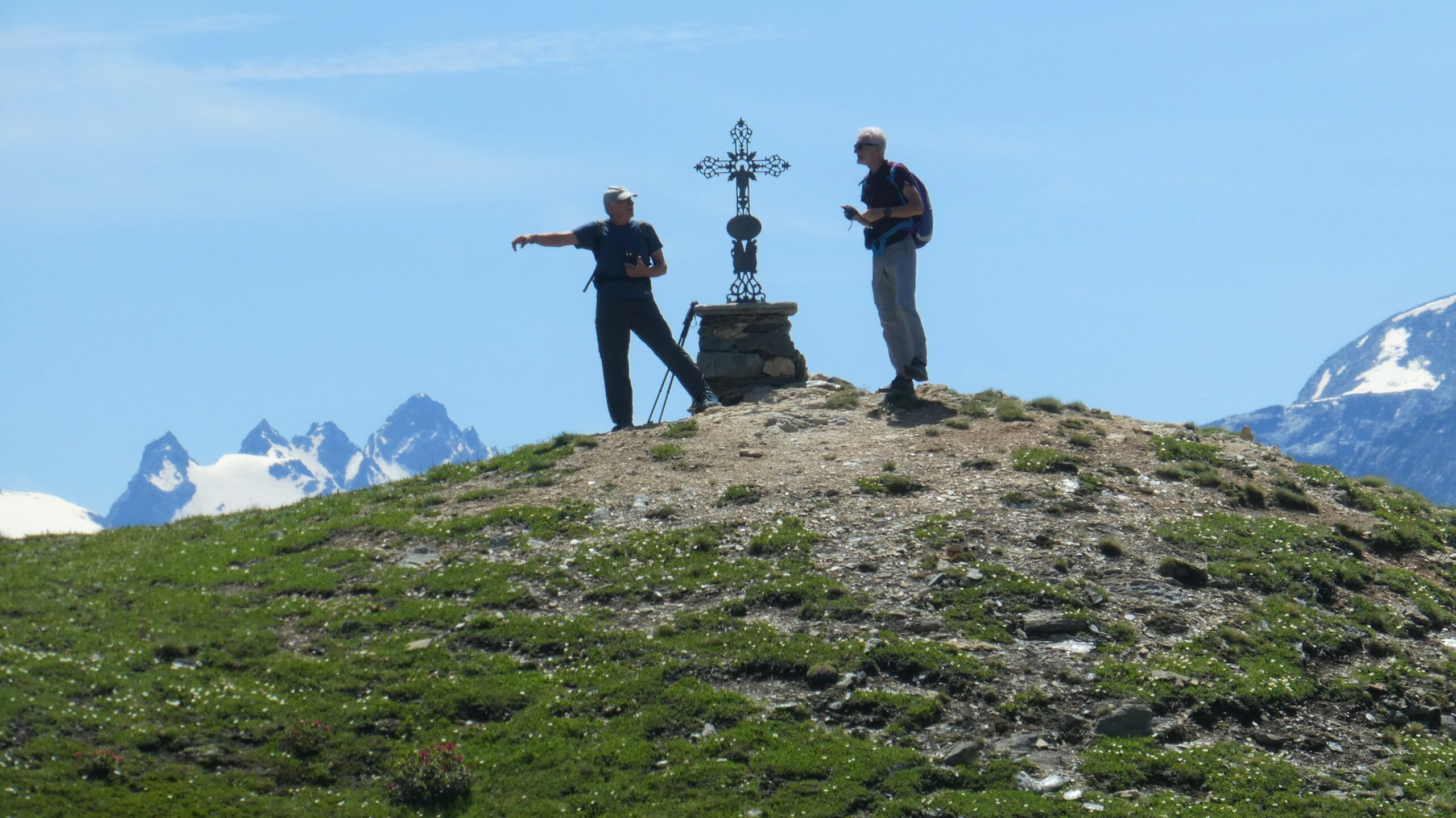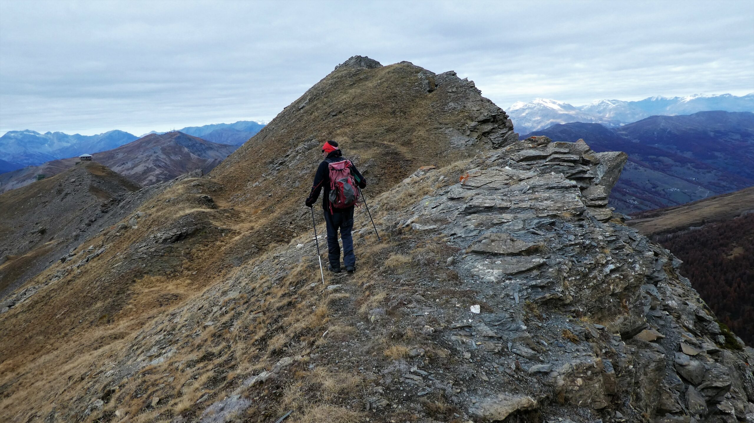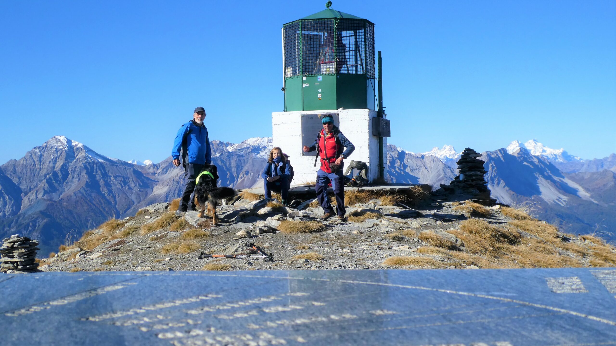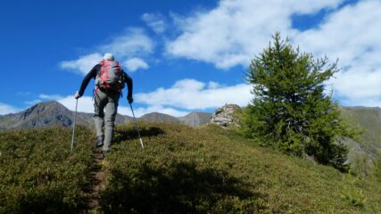 Partiti da Albard di bard su bella mulattiera, visita alla bella borgata Verale sotto il colle, rggiunta la cima con leggera brezza ma riparati sotto…