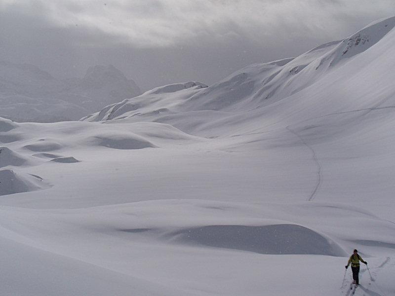 | g-bona | Enrico studia l'entrata nel ripido!! | g-bona | Enrico in azione sul ripido (1) ..e su acqua!! (2) | g-bona | Il "Cardonatti" sul cengione che traversa sotto i pendii | g-bona | la parte bassa dell'itinerario - il bel pendio iniziale | g-bona | La cresta finale carica di neve recente e pesante | g-bona | La cima a tratti nascosta dalle nuvole | g-bona | Paolo in salita. Sullo sfondo lo sperone della Finsteraahornhutte | g-bona | Paola e Renzo nella nebbia risalgono il pendio sotto il colle | g-bona | Il Mont Brulè visto scendendo dalla Kurz | g-bona | Tracce temerarie verso il Canale NO.. Chissà chi sarà?! | g-bona | Alberto sugli ultimi pendii sotto la cima | g-bona | Il bellissimo canale a "S" di salita | g-bona | Io sul plateau sommitale, prima del colle di Vofrede | g-bona | Ombre e luci su polvere scintillante | g-bona | Il gruppo sale..