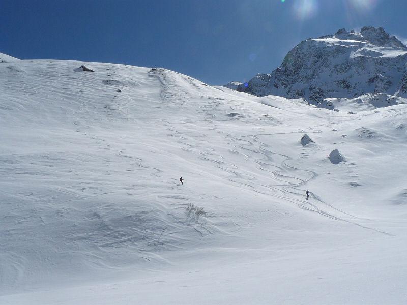 | g-bona | vista d'insieme | g-bona | Uscendo dal bosco del vallone del Gimont | g-bona | Fracnesca e sullo sfondo la Tour Termier | g-bona | Prime curve per Enrico. Notare la trincea di salita | g-bona | Canale "Lungo di destra", parte bassa | g-bona | Discesa primo canale | g-bona | uscita primo canale | g-bona | Canali scesi e valutazione proposta | g-bona | l'ingresso del vallone | g-bona | primo pendio sceso | g-bona | grandi curve! | g-bona | Slalom fra i pini | g-bona | ..E non manca il ripido! | g-bona | Classico panorama che stupisce sempre | g-bona | Parte finale del pendio Nord-Ovest
