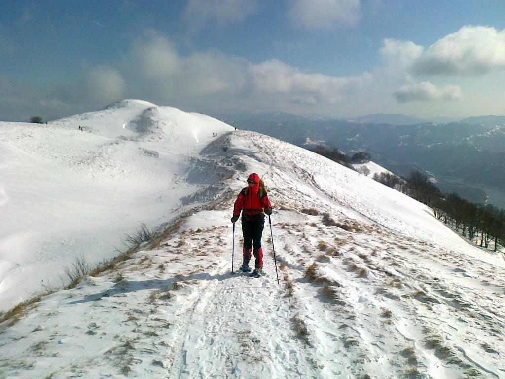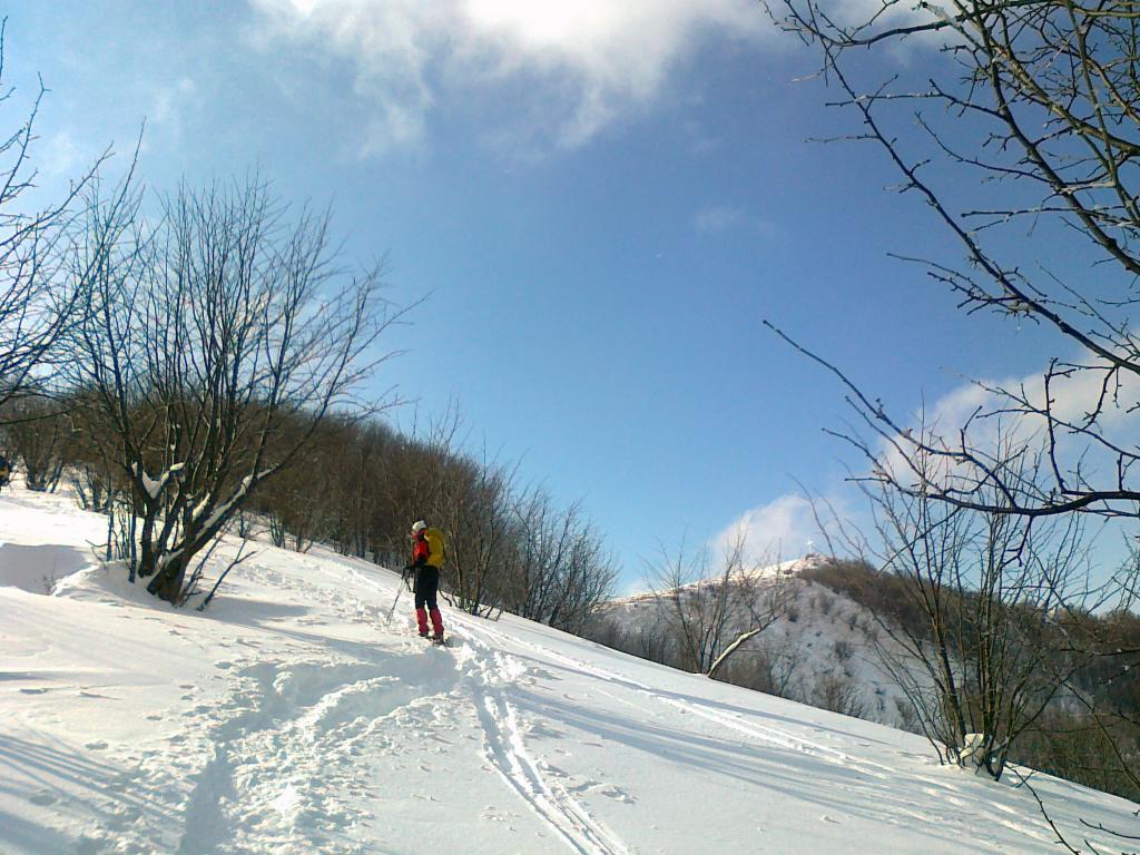 | g-bona | Andrea ed il "suo" Appennino Ligure! | g-bona | il sentiero di salita innevato | g-bona | sentiero expo | g-bona | le carcasse.. da cui il nome! | g-bona | Bric del Dente e canale della Carcassa | g-bona | ..nella trappola!! non resta che risalire.. | g-bona | il canale della Trappola (a destra)