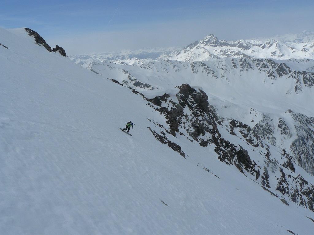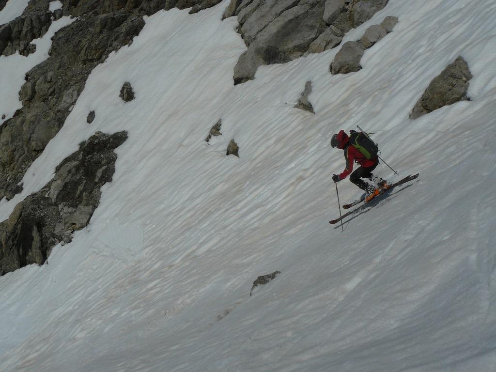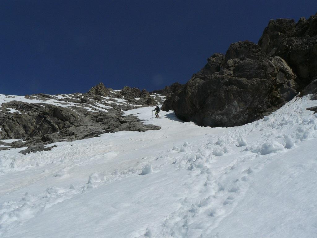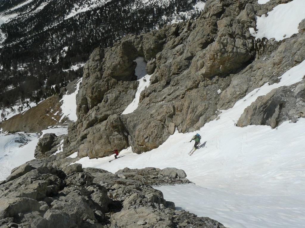 | g-bona | parete SudEst parte ripida alta | g-bona | imbocco primo canalino | g-bona | bel pendio a nord | g-bona | la NordOvest di oggi (vento implacabile) | g-bona | secondo canale parte alta | g-bona | ingresso secondo canalino su neve dura | g-bona | In uscita sul secondo canalino | g-bona | curvoni veloci sui pendii basali | g-bona | discesa primo canale | g-bona | Verso lo chalet Thures