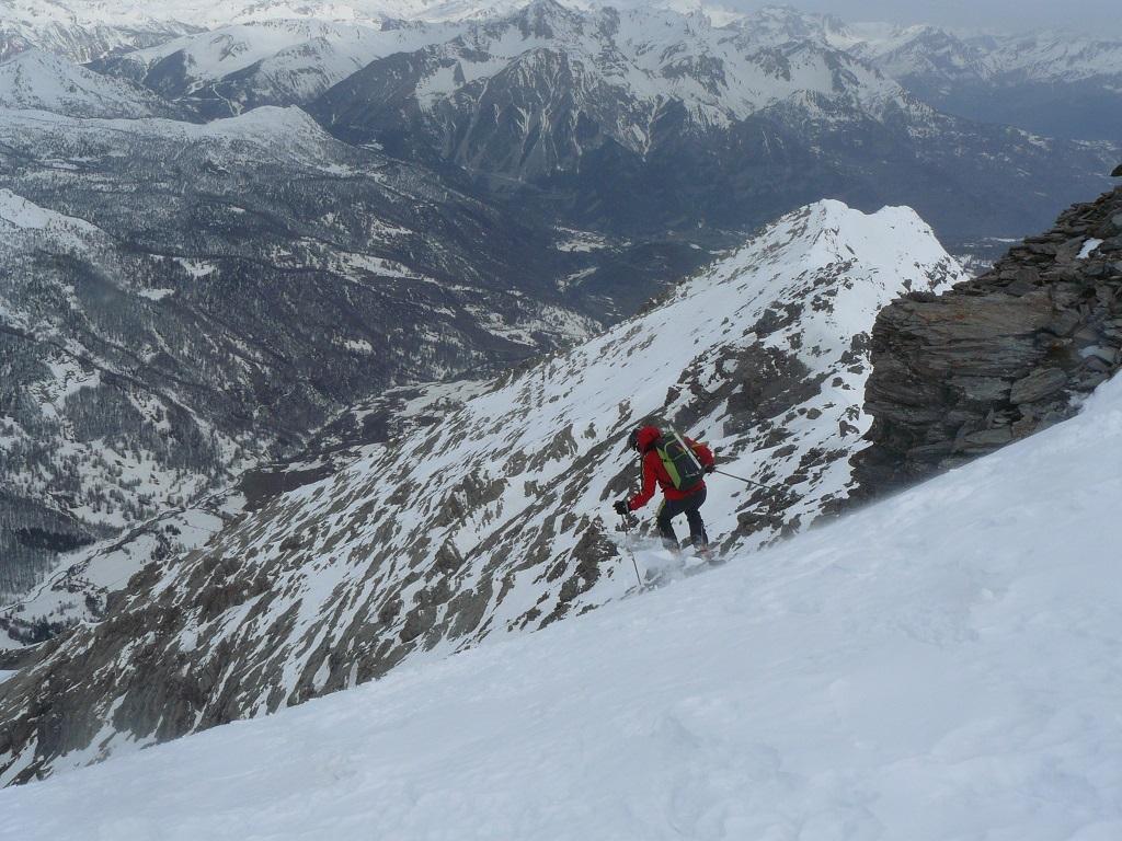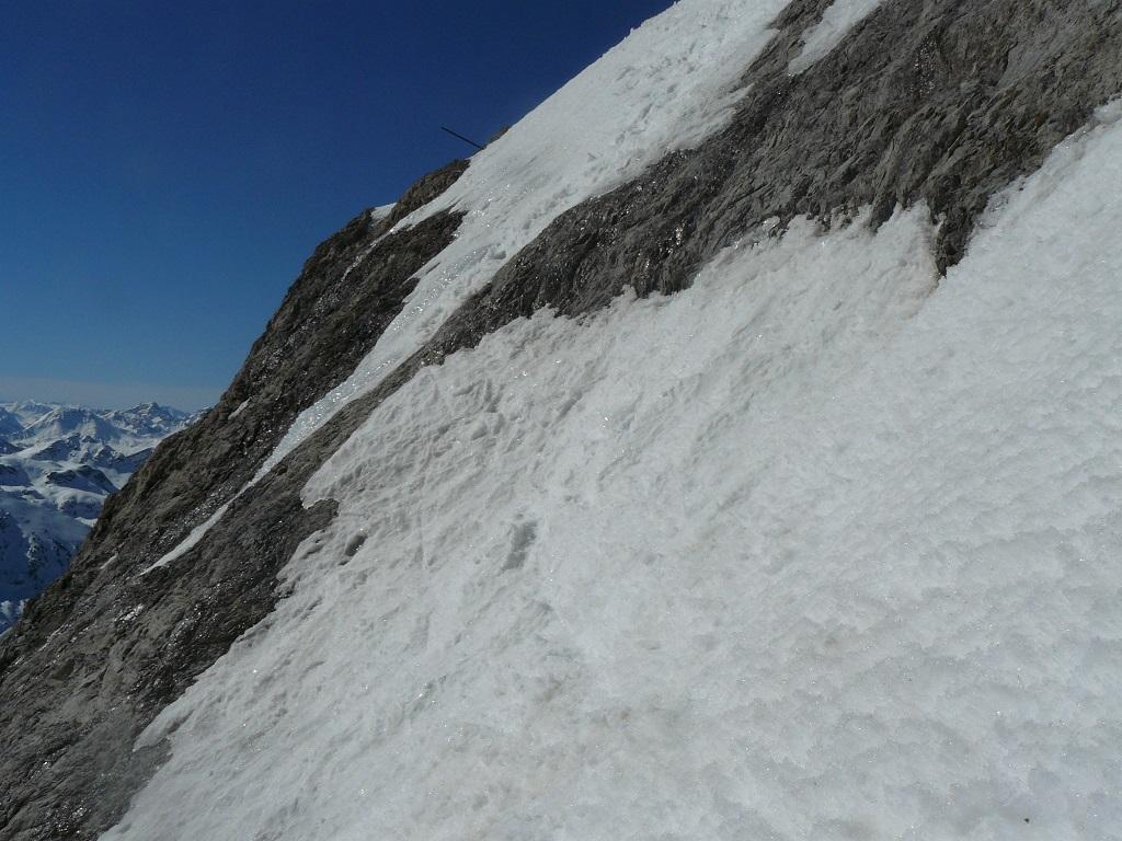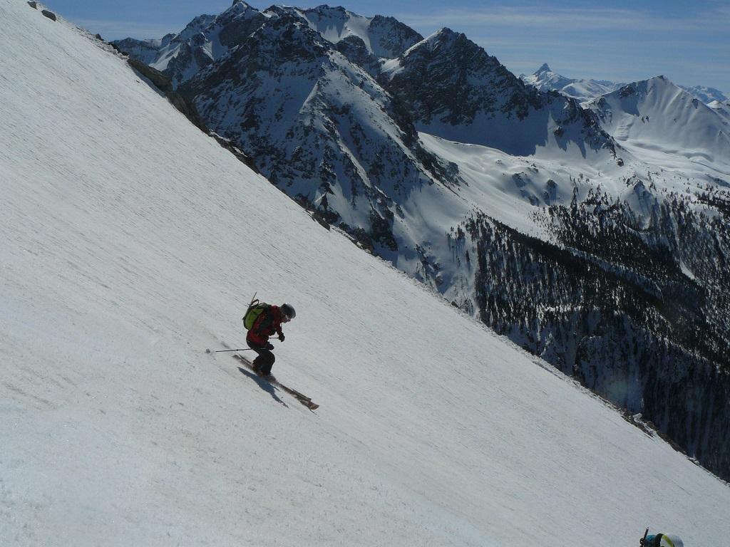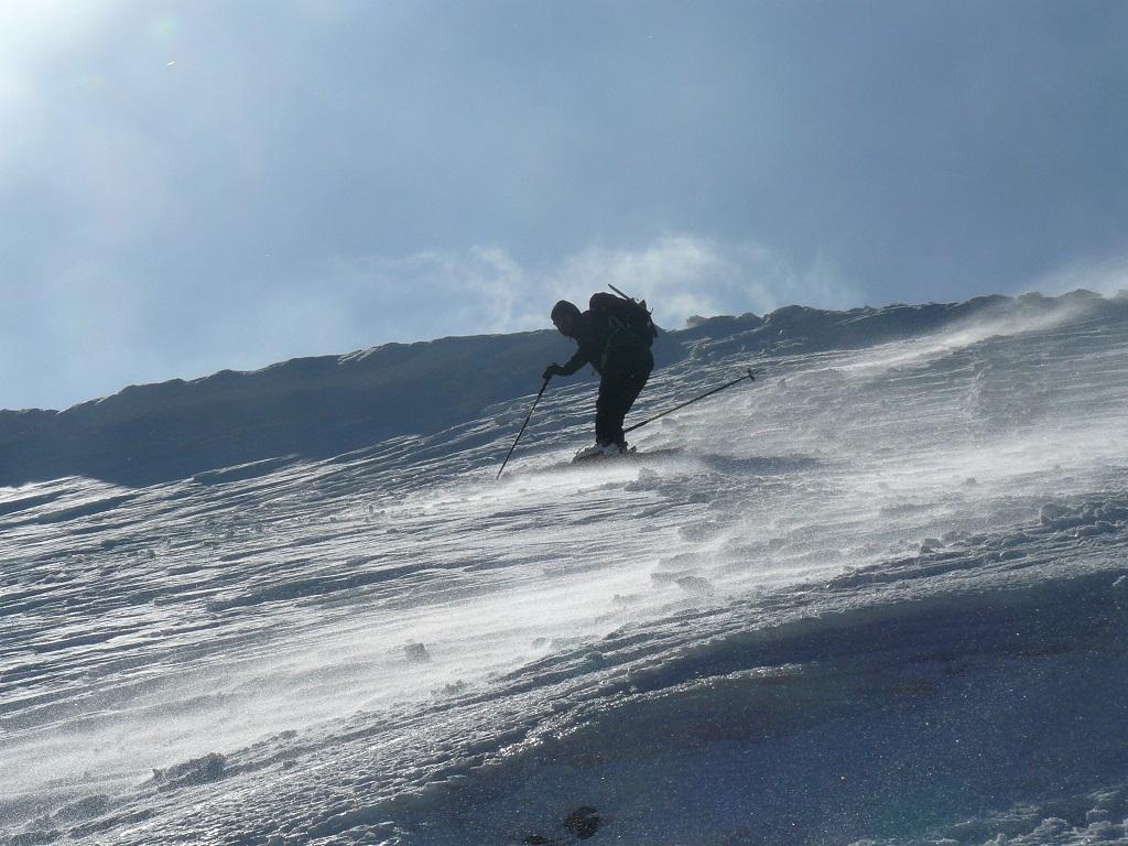 | g-bona | parete SudEst parte ripida alta | g-bona | imbocco primo canalino | g-bona | bel pendio a nord | g-bona | la NordOvest di oggi (vento implacabile) | g-bona | secondo canale parte alta | g-bona | ingresso secondo canalino su neve dura | g-bona | In uscita sul secondo canalino | g-bona | curvoni veloci sui pendii basali | g-bona | discesa primo canale | g-bona | Verso lo chalet Thures