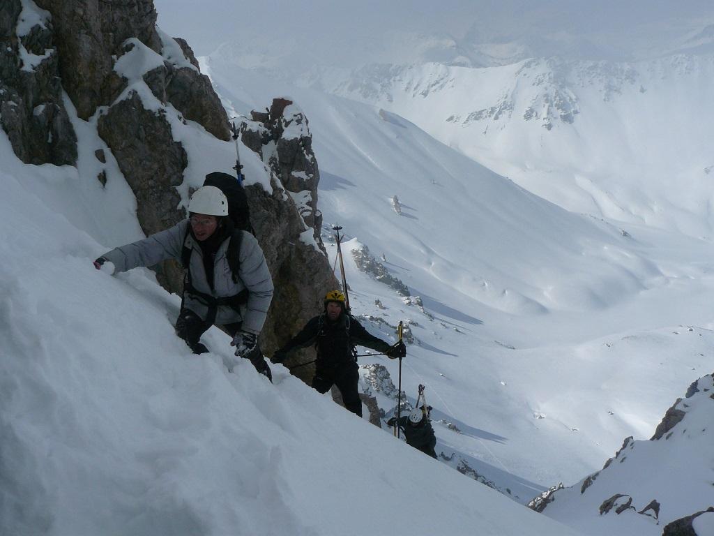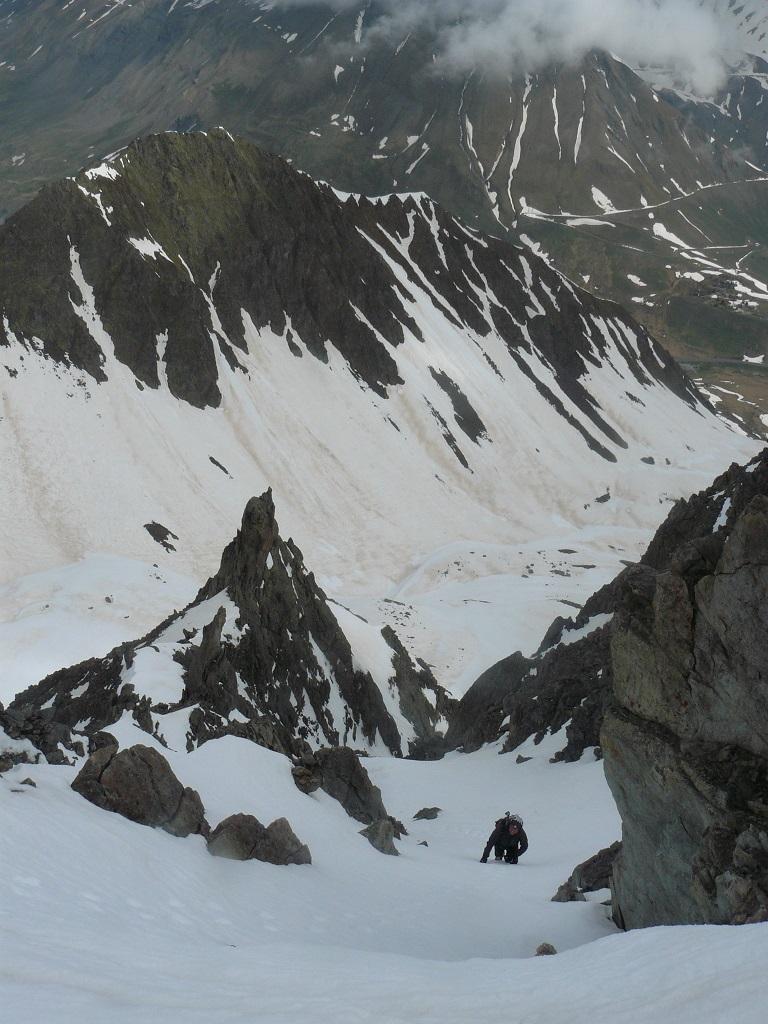 | g-bona | il circo Combeynot stamattina alle 7 | g-bona | Daniele in salita dopo la goulotte | g-bona | uscita dal canale | g-bona | Goulottina in discesa