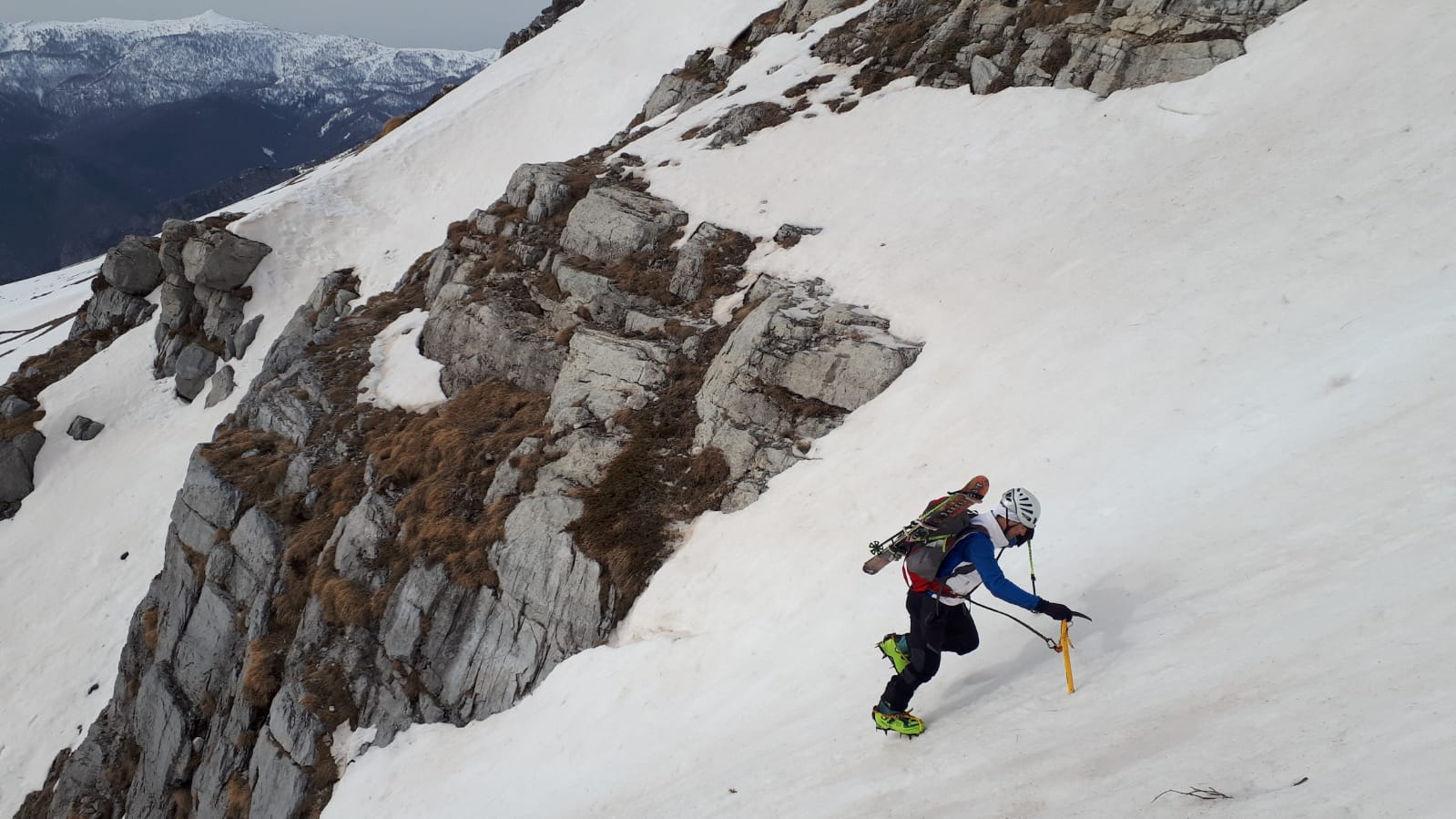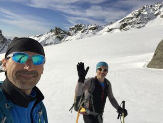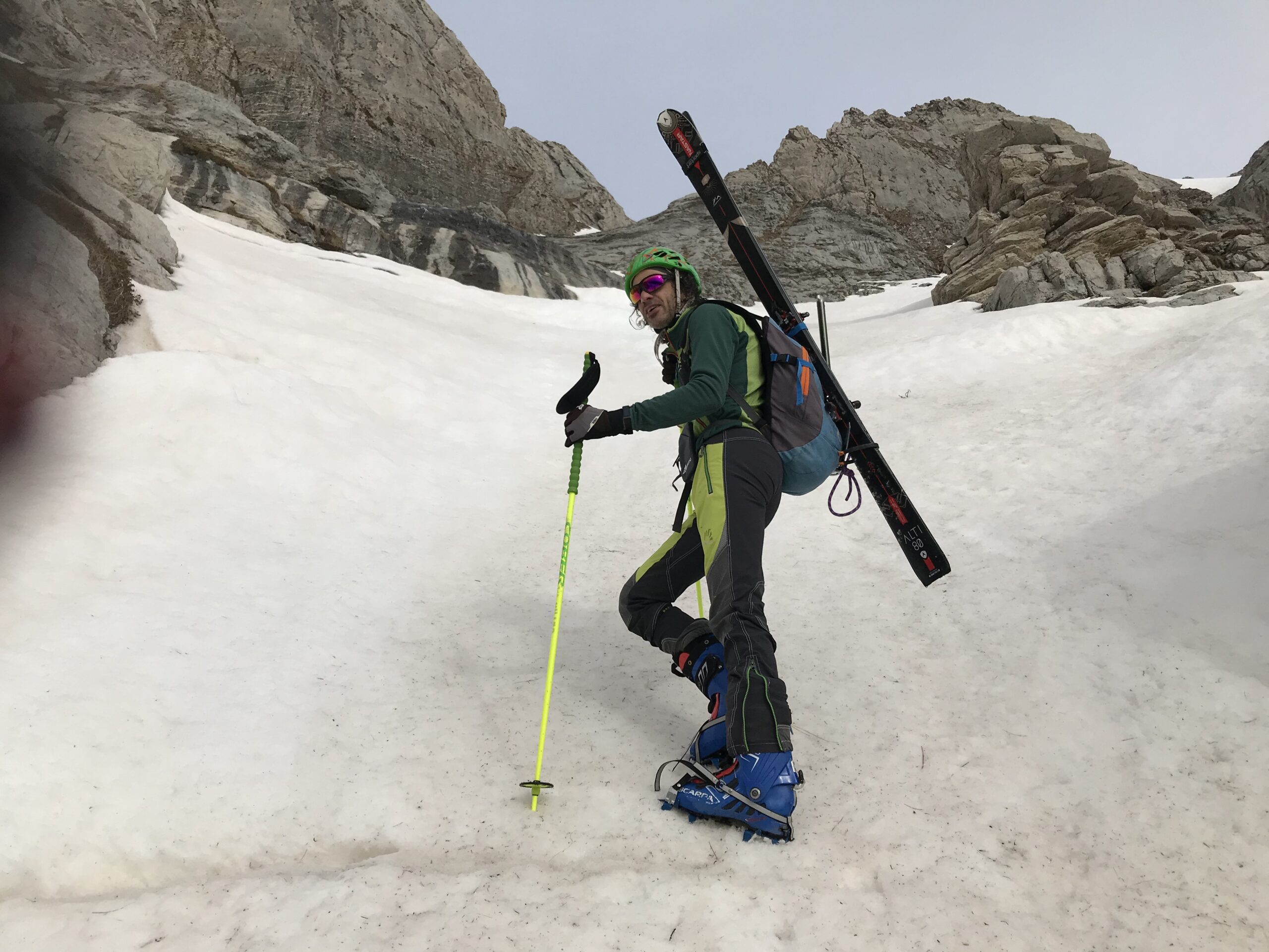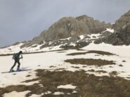 Conviene portare gli sci fino all’imbocco del valloncello. Neve dura in salita fino al pianoro. Dal pianoro 2800 in cima, neve recente non esaltante…
